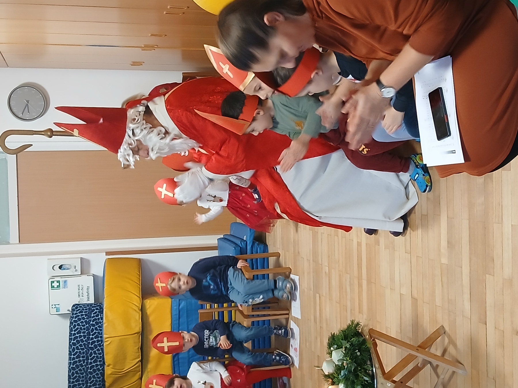 Der Nikolaus besuchte unseren Kindergarten und sorgte für eine besonders stimmungsvolle Atmosphäre. Sowohl im Haupthaus als auch im Container nahm er sich Zeit für die Kinder. Diese begrüßten ihn mit fröhlichen Liedern und überreichten ihm voller Stolz ihre selbstgemalten Bilder. Als Dankeschön hatte der Nikolaus für jedes Kind ein liebevoll gefülltes Sackerl dabei, das er persönlich verteilte.