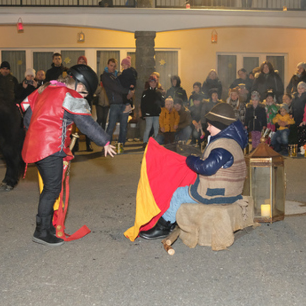 Nach der Martinsfeier ziehen wir gemeinsam mit unseren Laternen eine kleine Runde durch Kopfing und kehren in den Hof zurück. Anschließend spielen die Hortkinder für uns die Legende vom Hl. Martin mit seinem Pferd. Danach lassen wir das Fest mit Punsch und leckeren Keksen gemütlich im Hof ausklingen