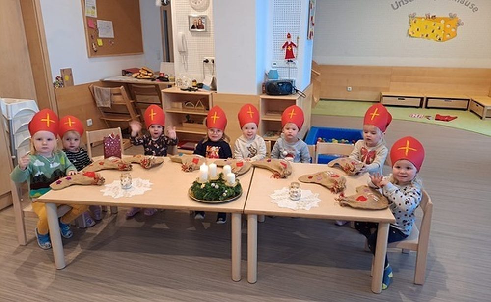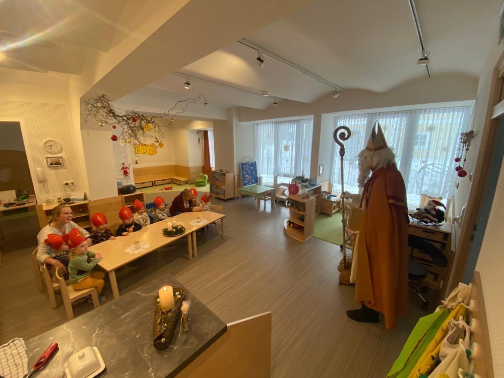 Vollgepackt mit Geschenken ging der Hl. Nikolaus zuerst zu den Krabbelstubenkindern. Unsere Kleinsten waren sehr mutig und holten sich sogar ihre selbstgebastelten Nikolausstiefel vom bärtigen Mann persönlich ab.