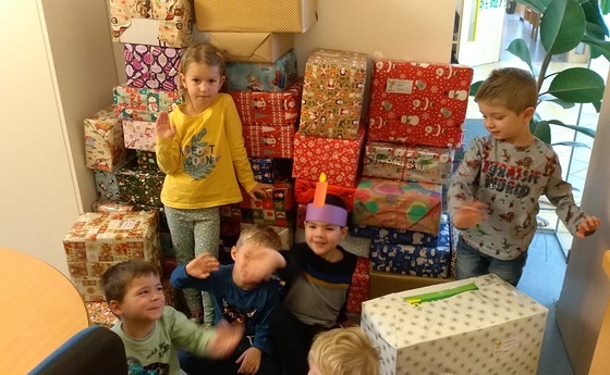 Seit ein paar Jahren beteiligt sich unsere Kinderbetreuungseinrichtung an der von ORA organisierten Aktion „Weihnachten in der Schuhschachtel“, bei der armen Kindern in Osteuropa kleine Weihnachtsgeschenke übermittelt werden.
