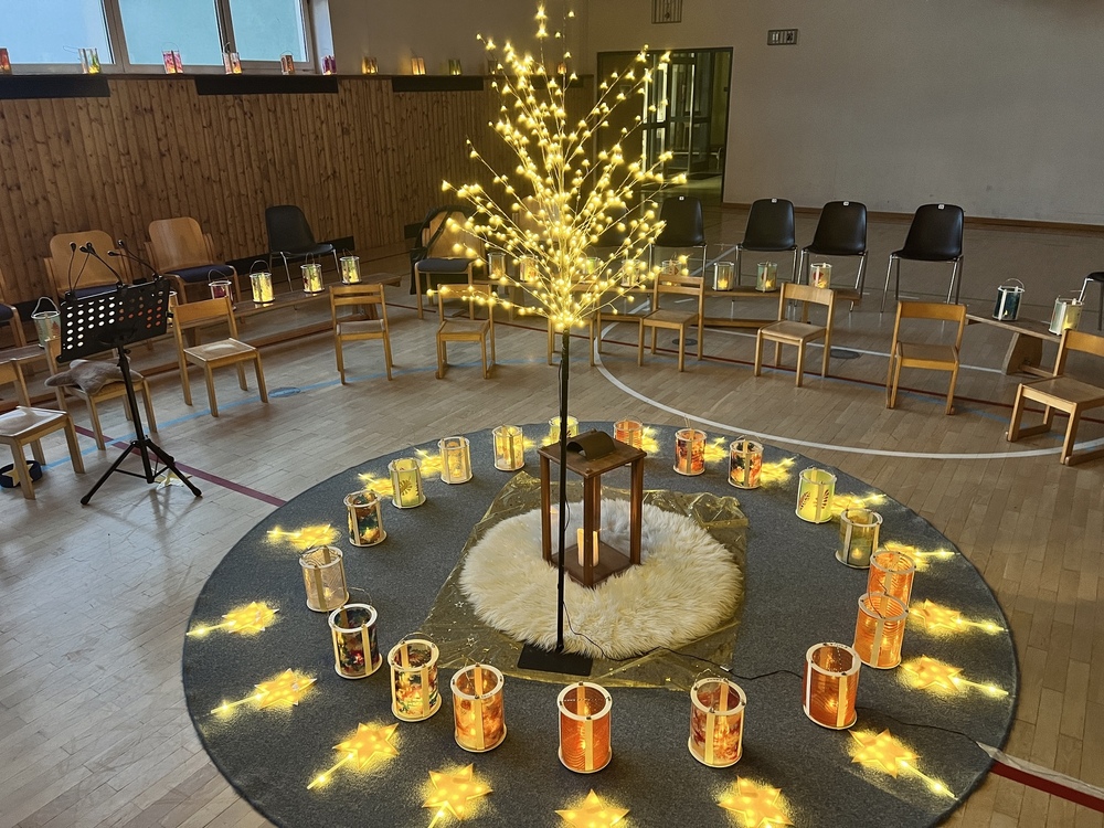 Am 11.November fand unser diesjähriges Martinsfest unter dem Motto "Wir leuchten hell wie Sterne" im Turnsaal der Volksschule statt. Dieser war festlich geschmückt und überall funkelten Lichter. Unsere Schulanfänger durften bei diesem Fest besondere Aufgaben übernehmen.
