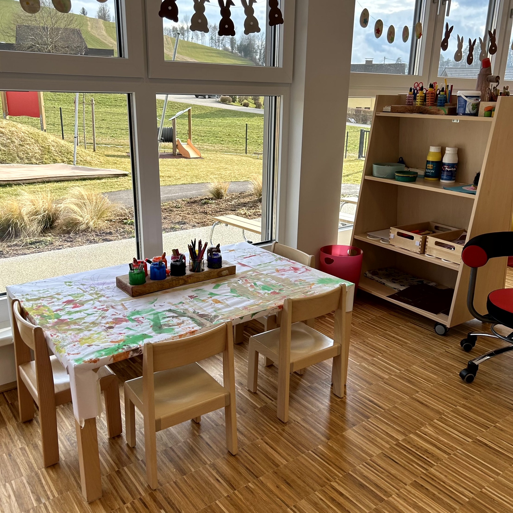 Die rote Gruppe ist identisch mit der grünen Gruppe, jedoch wird jeder Gruppenraum von der jeweiligen Pädagogin individuell eingerichtet.