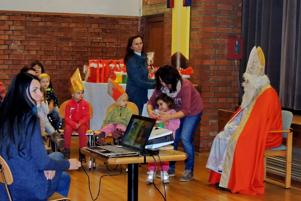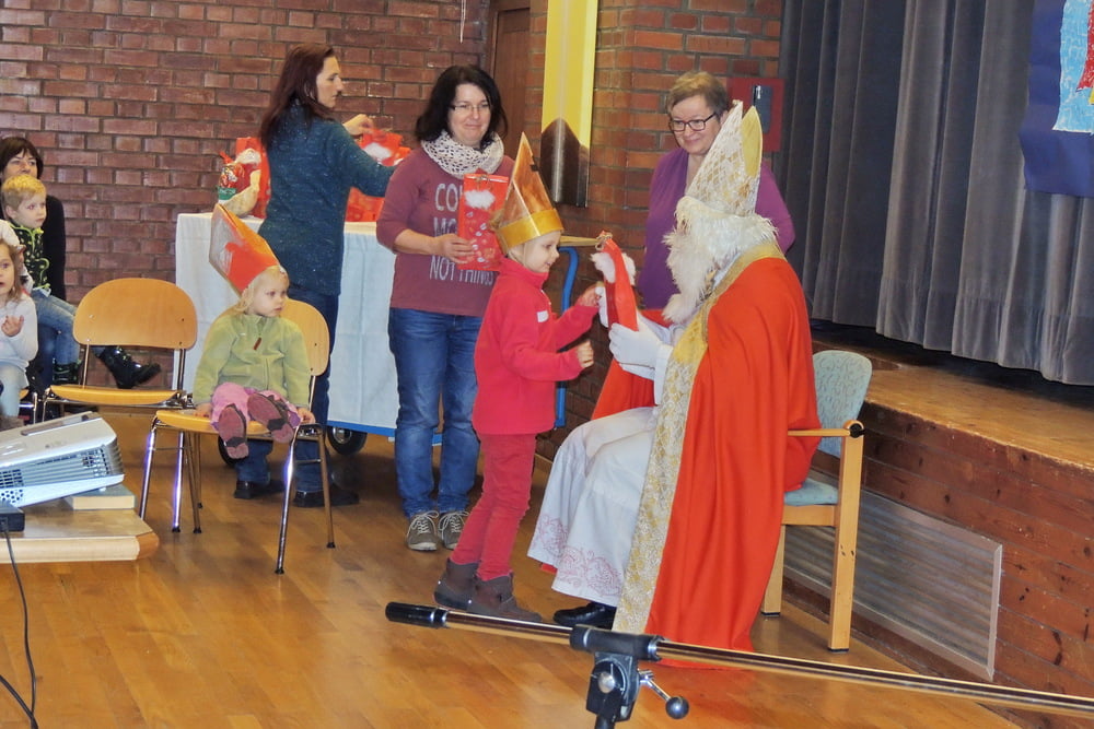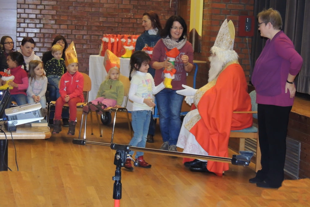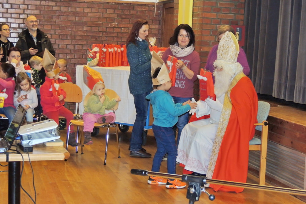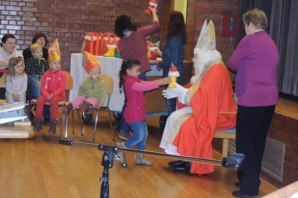 Der Nikolaus wurde von Kindern und Eltern empfangen. Es wurde gesungen und musiziert. Alle wurden vom Nikolaus beschenkt. Danke an Hans Marckhgott!