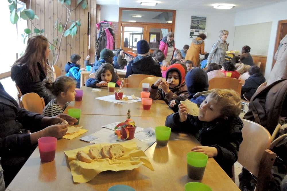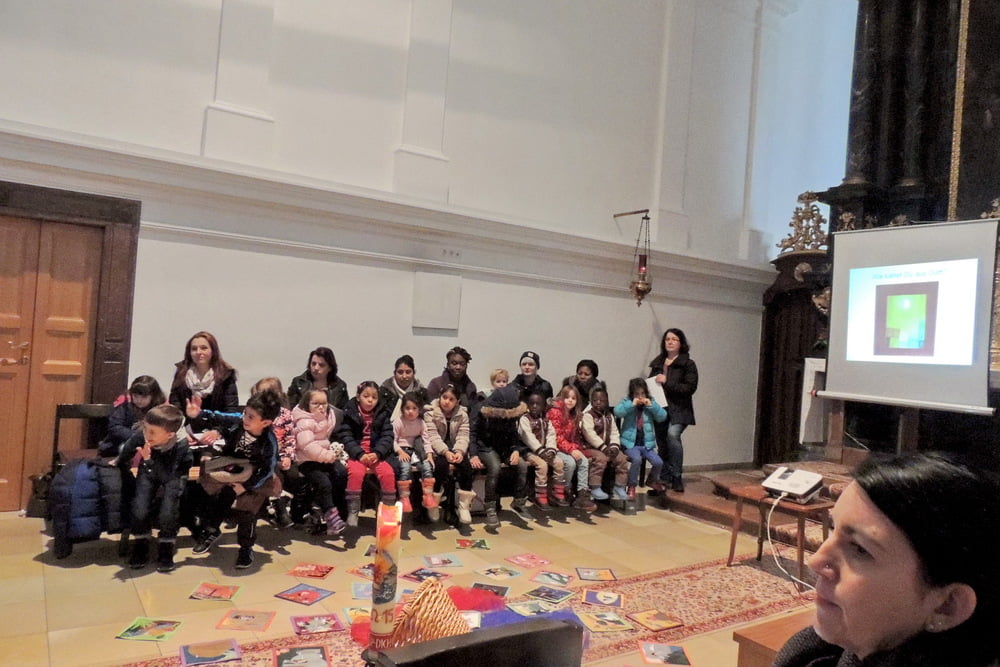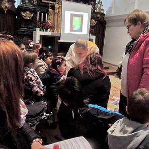 Das Thema der heurigen Kindersegnung war "Wie siehst du aus, Gott?" Es wurden auch Familien, deren Kinder in der Pfarre getauft wurden, eingeladen. In die Feier wurden Zeichnungen der Schulanfänger eingebaut. Sie brachten darin zum Ausdruck, wie sie sich Gott vorstellen. Die Thematik des Festes wurde durch Lieder "Sag, wo wohnt der liebe Gott?" und "Ja, Gott hat alle Kinder lieb" unterstrichen. Schließlich segnete Herr Mag. Helmut Kolnberger jedes Kind persönlich. Mit dem Lied "Hinaus in die Welt" in dem wir aufgefordert werden, von Gottes Taten, seiner Liebe zu den Menschen, in unserem Leben zu erzählen, haben wir die Feier beendet. Anschließend gab es im Pfarrheim eine kleine Agape mit Brot und Traubensaft.