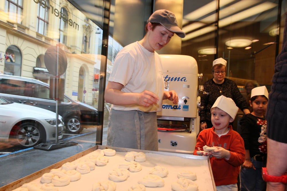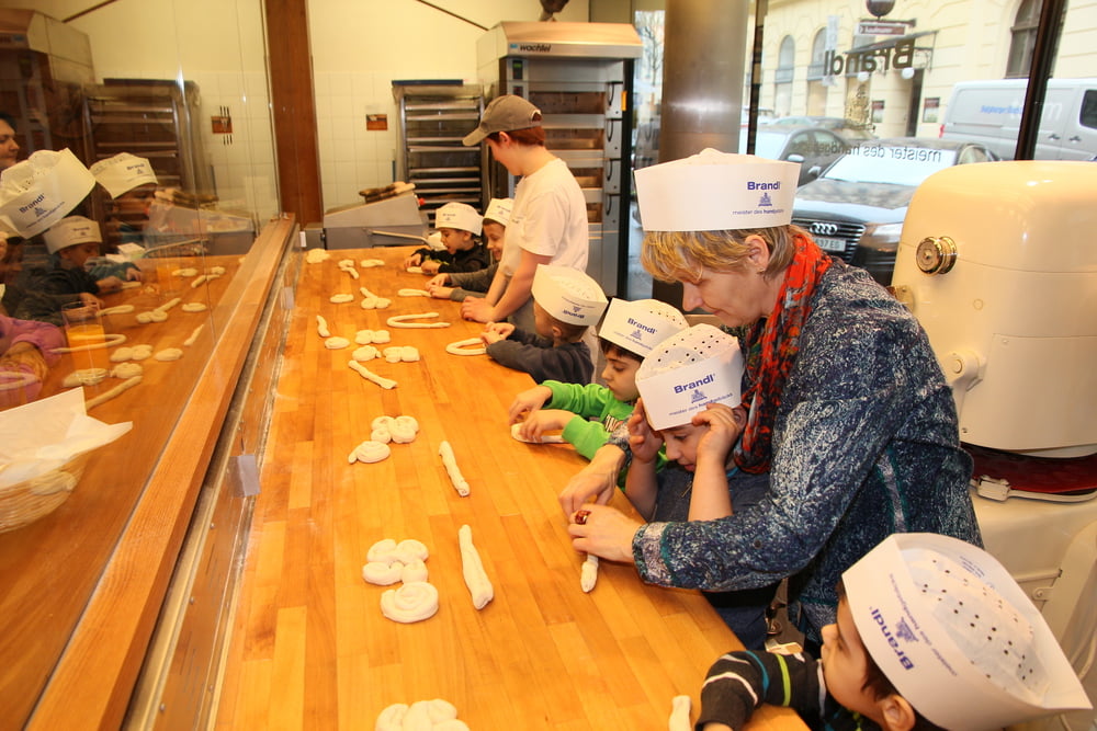 Wir erlebten interessante und lehrreiche Stunden in der Bäckerei Brandl und durften fleißig mitarbeiten.