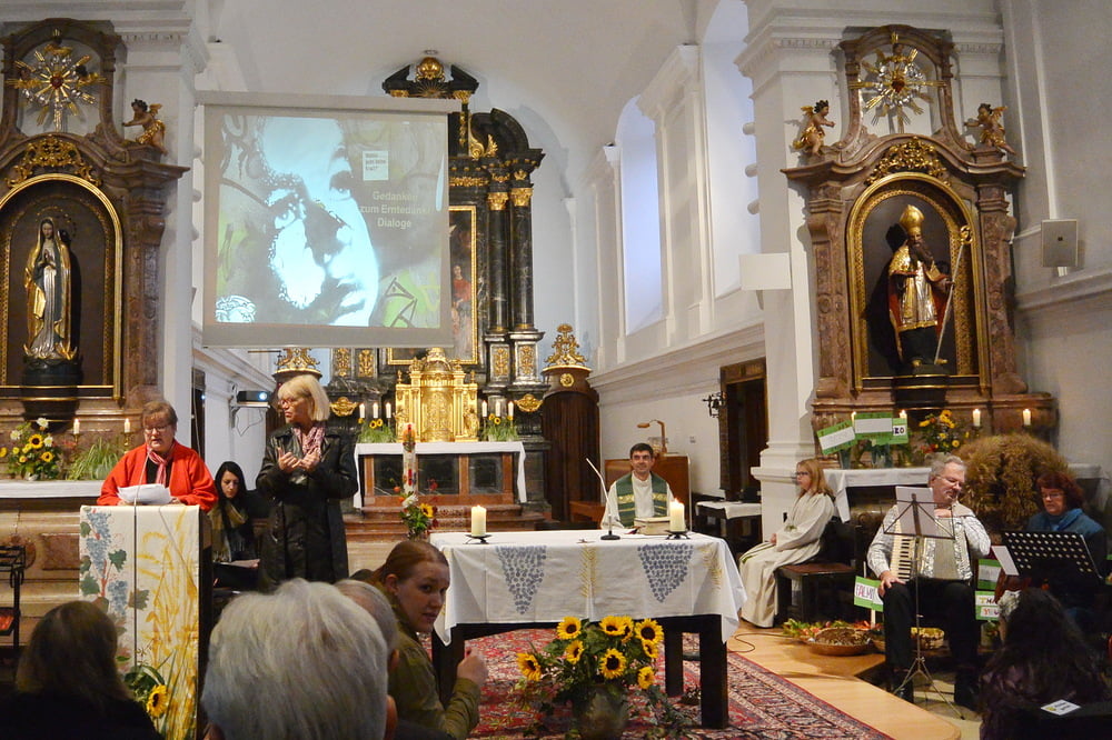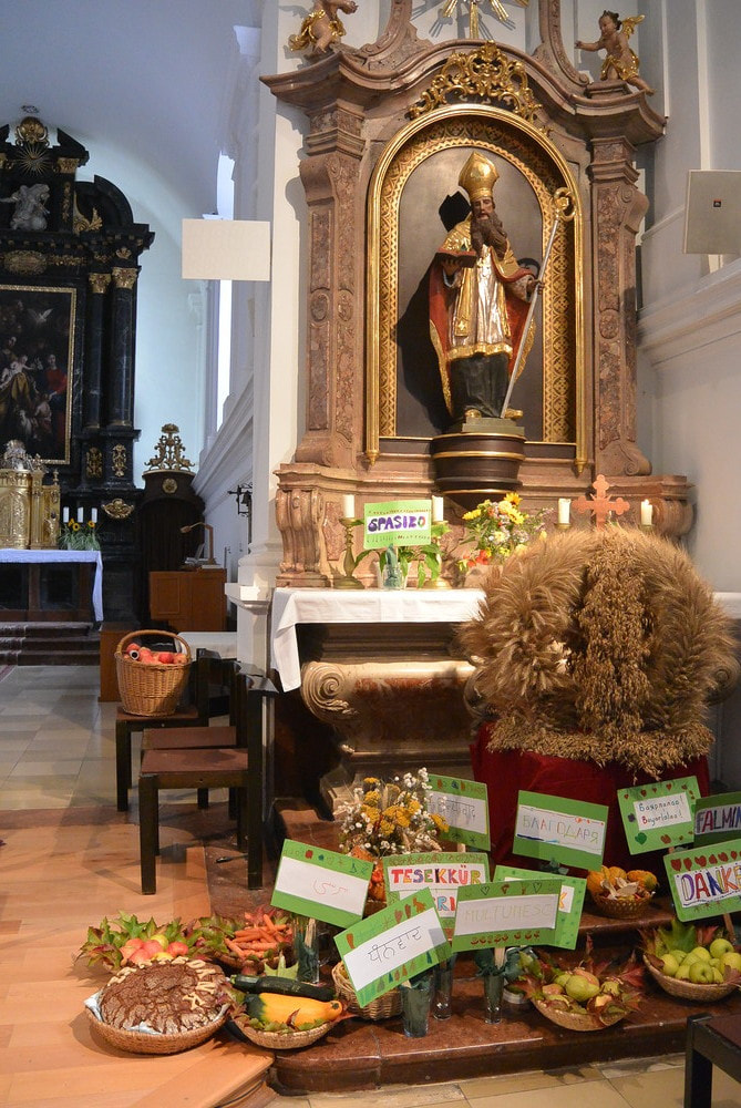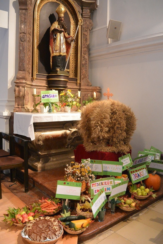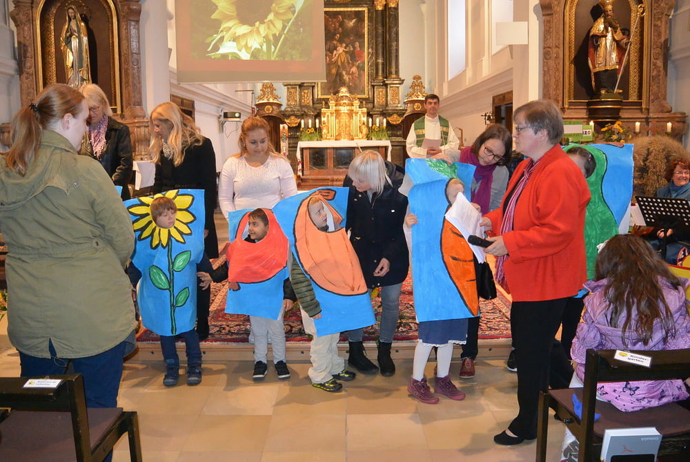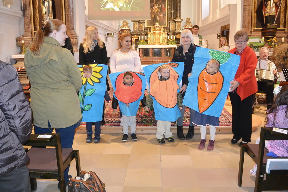 Pater Johannes Herz SJ feierte mit uns Erntedank. Das Fest wurde vom Kindergartenteam vorbereitet und musikalisch gestaltet. Im Anschluss gab es internationale Köstlichkeiten. Danke an alle, die zu diesem wunderschönen Fest beigetragen haben.
