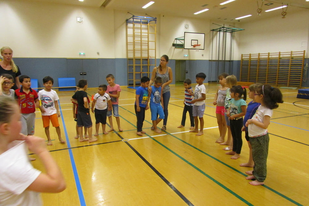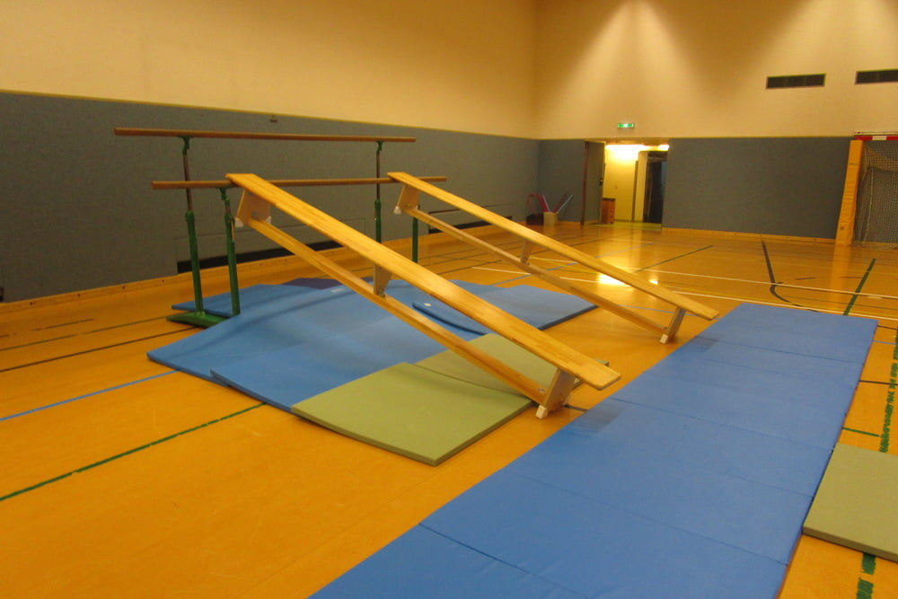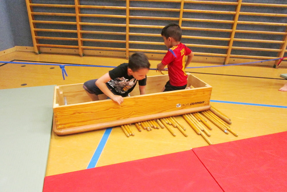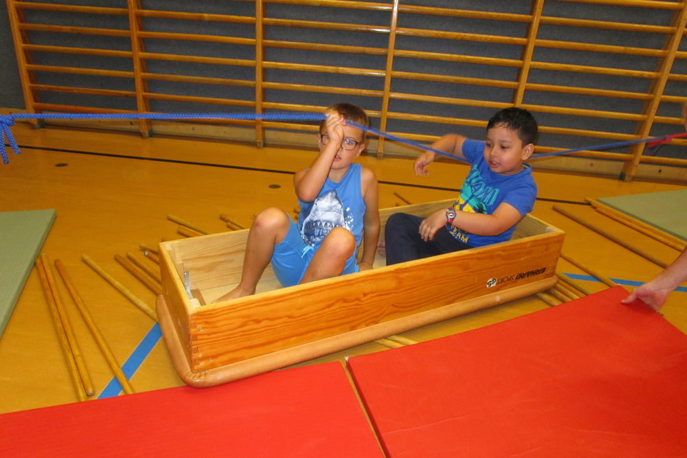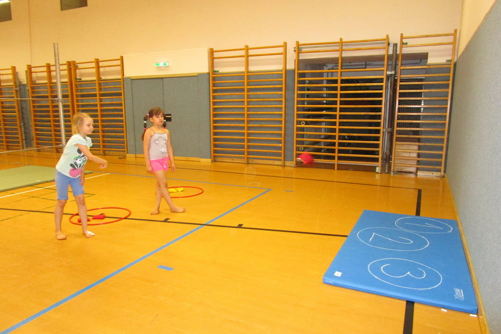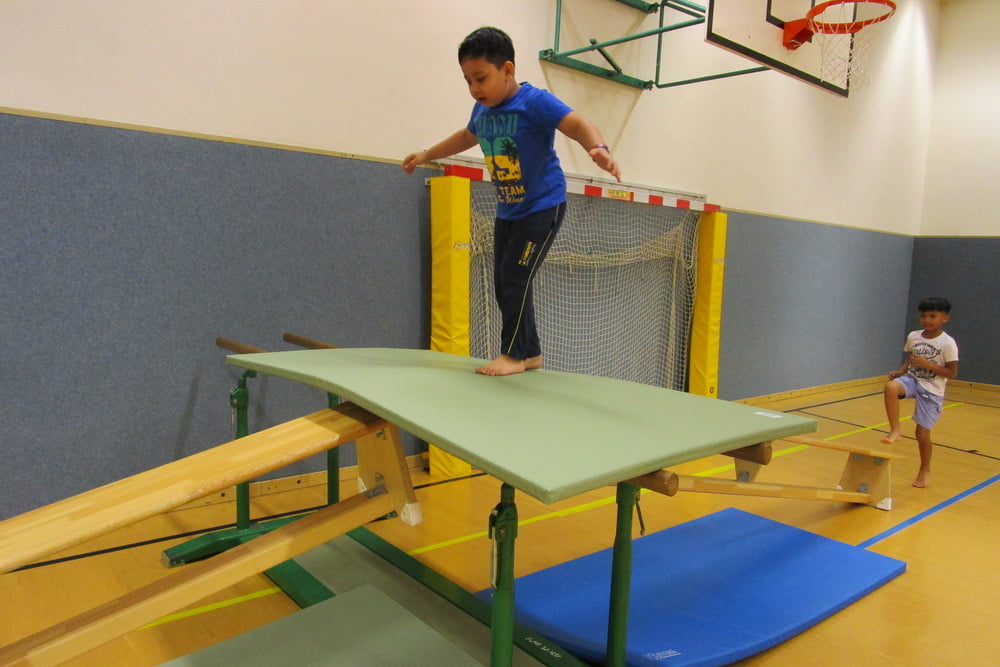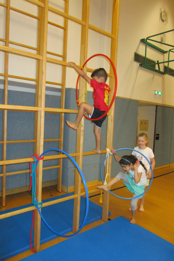 Unsere Schulanfänger durften auf Einladung die Turngeräte des großen Turnsaales in der Jahnschule probieren.