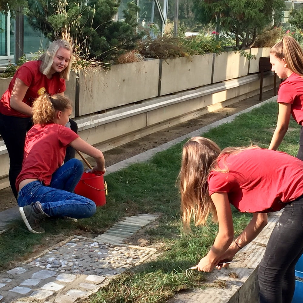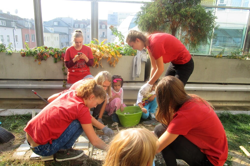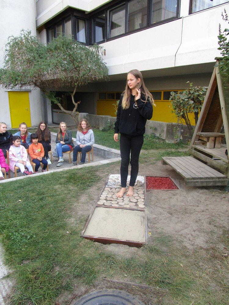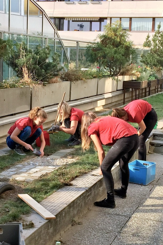 Beim 72-Stundenprojekt halfen uns die Schülerinnen der Fachschule aus Rohrbach, unseren Tastweg im Garten neu zu gestalten.