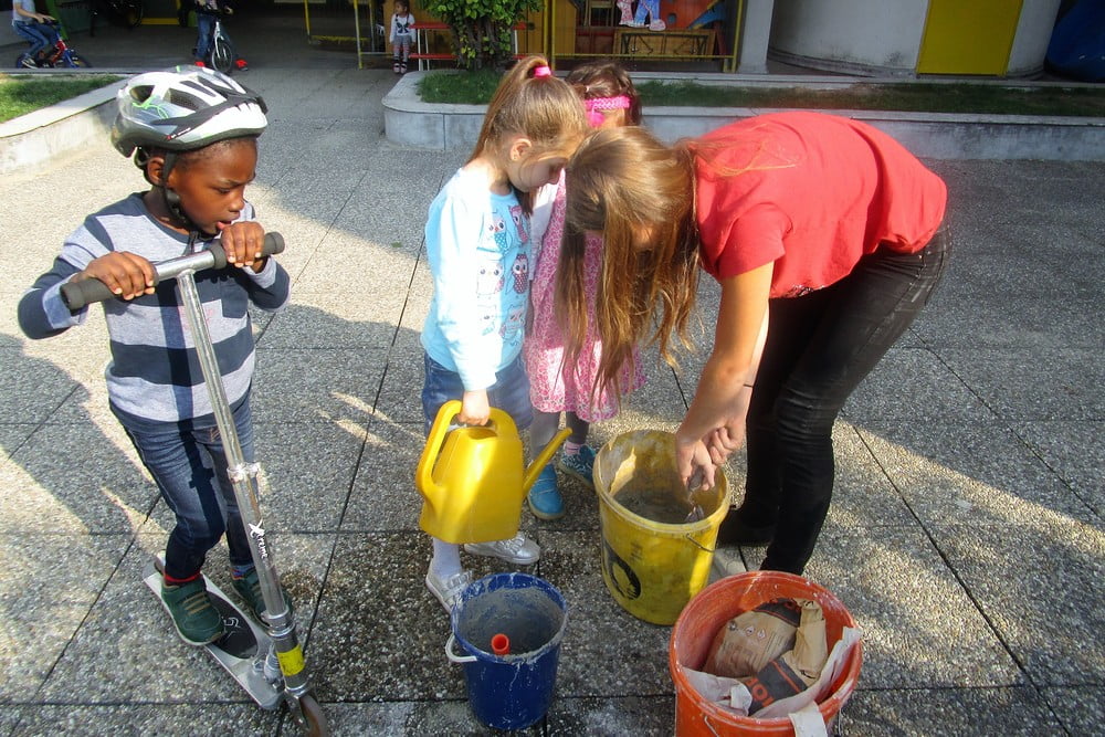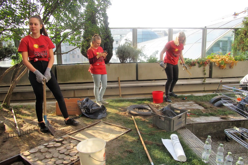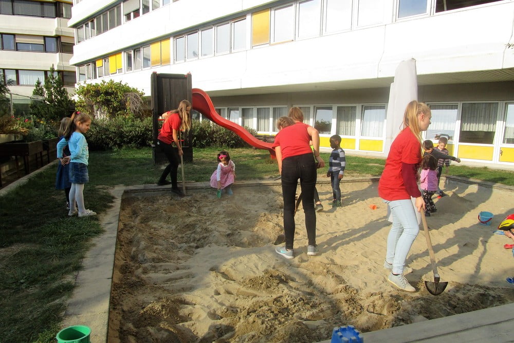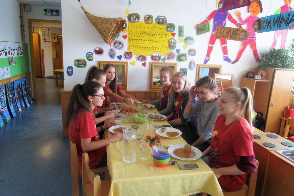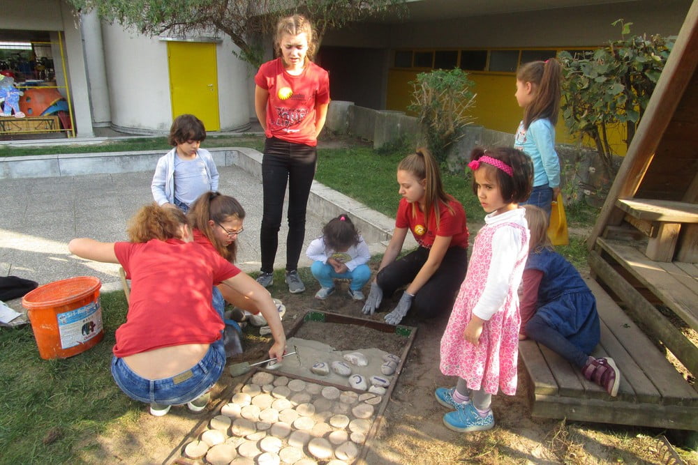 Beim 72-Stundenprojekt halfen uns die Schülerinnen der Fachschule aus Rohrbach, unseren Tastweg im Garten neu zu gestalten.