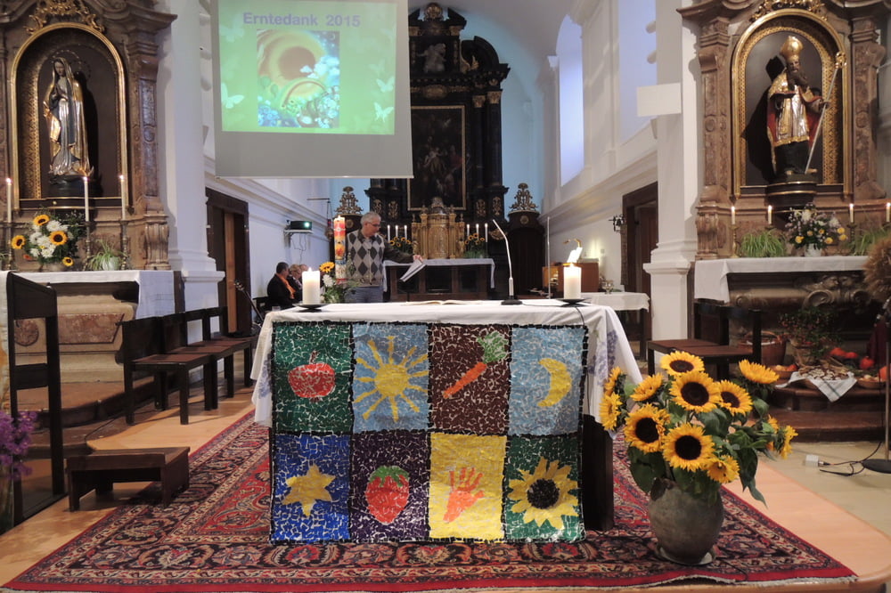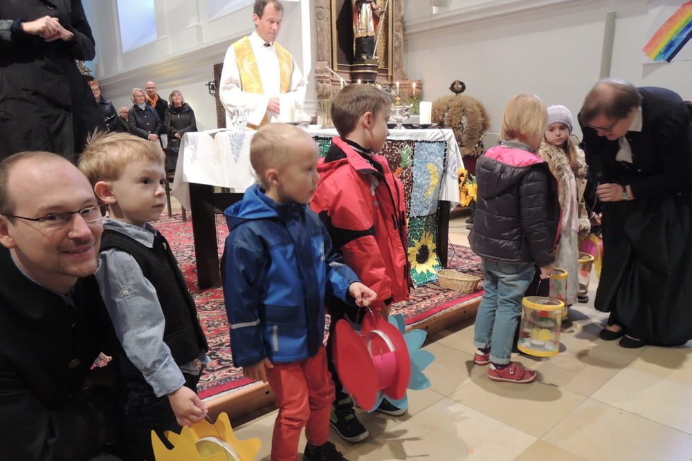 Als Vorbereitung auf das Erntedankfest hörten wir von FRANZ VON ASSISI. Wir lernten den Refrain seines Lobliedes über die Schöpfung, den Sonnengesang, in dem er Gott für alle Geschöpfe dankt.