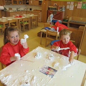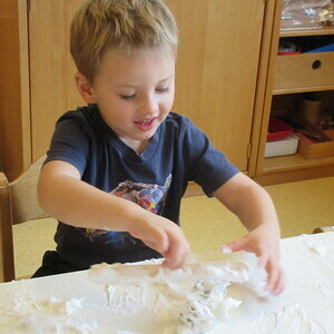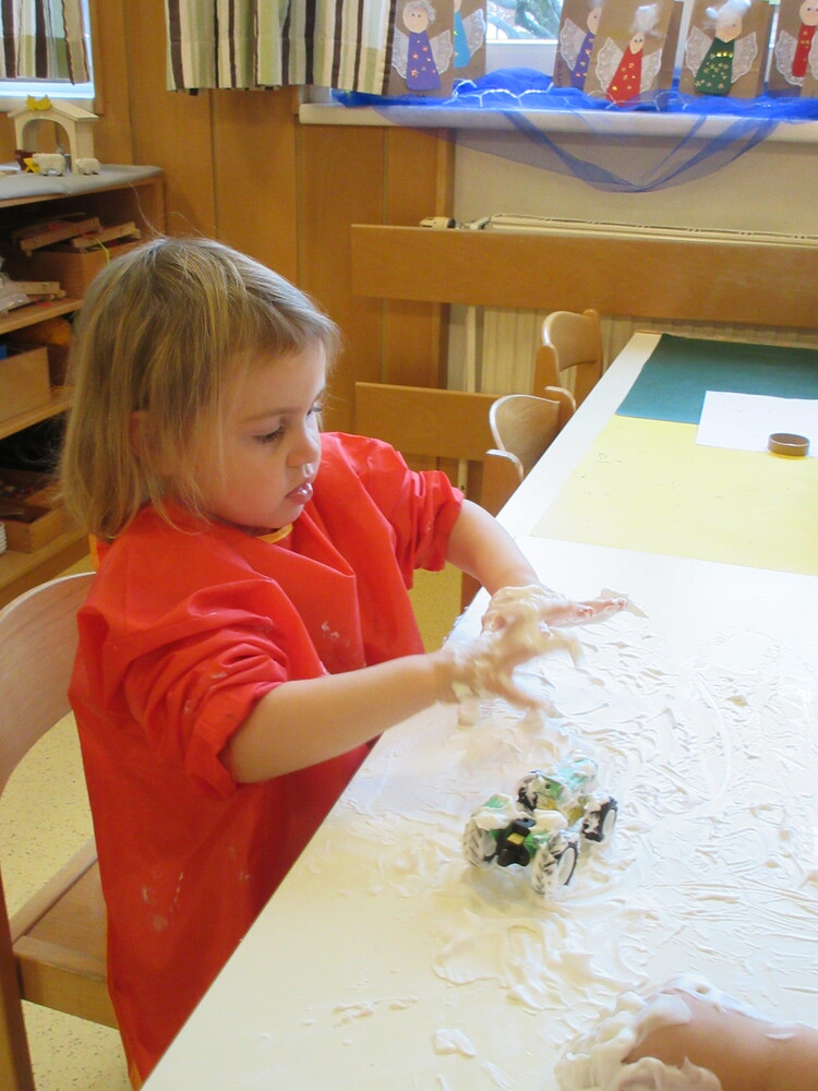 Anfang Dezember war es wieder einmal Zeit für das Malen mit Rasierschaum. Besonders spannend war dieses Mal der Schneepflug und die verschiedenen Autos. Das Ziel dieses Angebotes ist, zahlreiche Sinneseindrücke (Tastsinn, Geruchssinn, etc.) zu sammeln und die Wahrnehmung zu fördern.