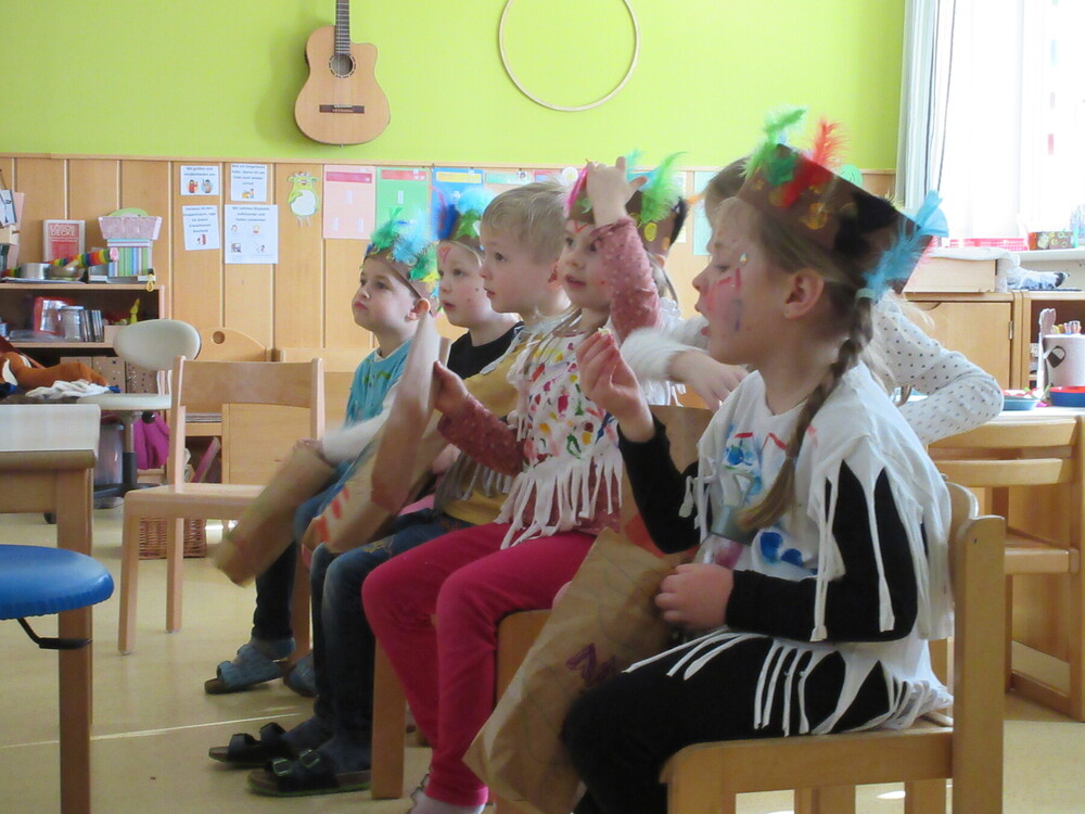 Am 28. Februar fand das Indianerfest in der Sonnengruppe statt. Natürlich durfte ein passendes Kostüm nicht fehlen. Eine Indianerjause wurde gemeinsam mit den Kindern zubereitet. Abschließend gab es ein „Indianerkino“ mit Popcorn.