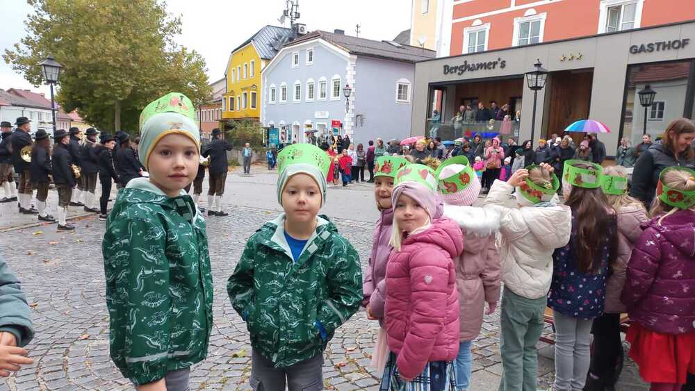 Ein besonderes Highlight war der Auftritt unserer Schulanfänger, die am Sonntag auf dem Marktplatz ein Lied sangen und damit auch außerhalb des Kindergartens für herbstliche Stimmung sorgten.
