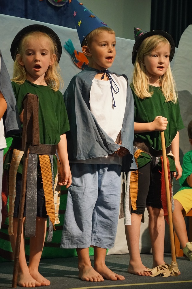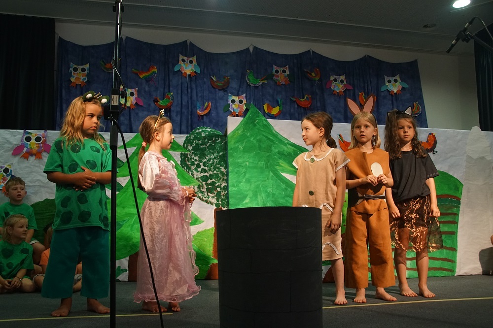 Die Kindergartenleiterin Elisabeth Leonhartsberger hat wieder ein passendes Stück für die Schulanfänger geschrieben und mit den Kindern einstudiert. Die Schulanfänger haben nicht nur gespielt, sondern auch das Bühnenbild gemalt. Herzlichen Glückwunsch zu dieser großartigen Leistung!