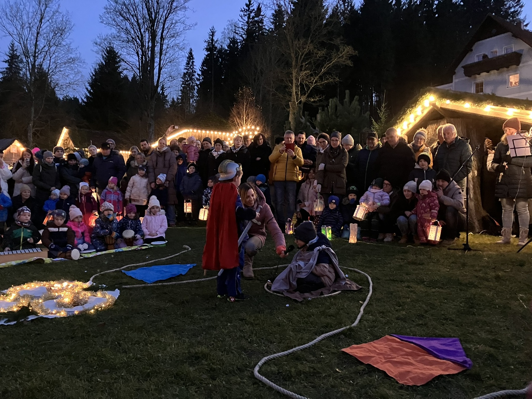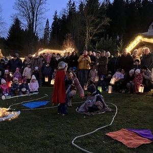 Am 11. November 2025 haben wir gemeinsam im Mühlendorf unser Martinsfest gefeiert. Viele Gäste sind unserer Einladung gefolgt. Die Schulanfänger haben zum Lied "Komm geh mit mir" getanzt und die Regenbogenkinder haben die Martinsgeschichte ausgespielt. Gemeinsam konnten wir singen und die schöne Atmosphäre mit unseren Laternen genießen.