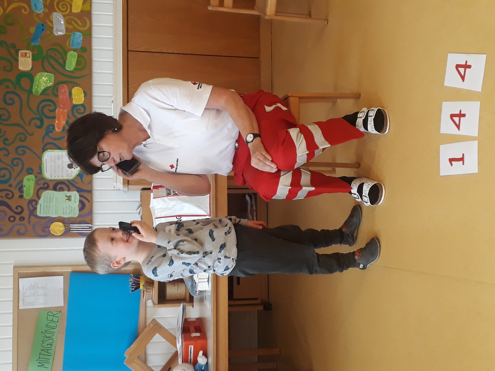 Durch einen „echten“ Anruf bei der Rettung wurde den Kindern gezeigt, wie wichtig es ist, seinen vollständigen Namen und die Adresse zu kennen.