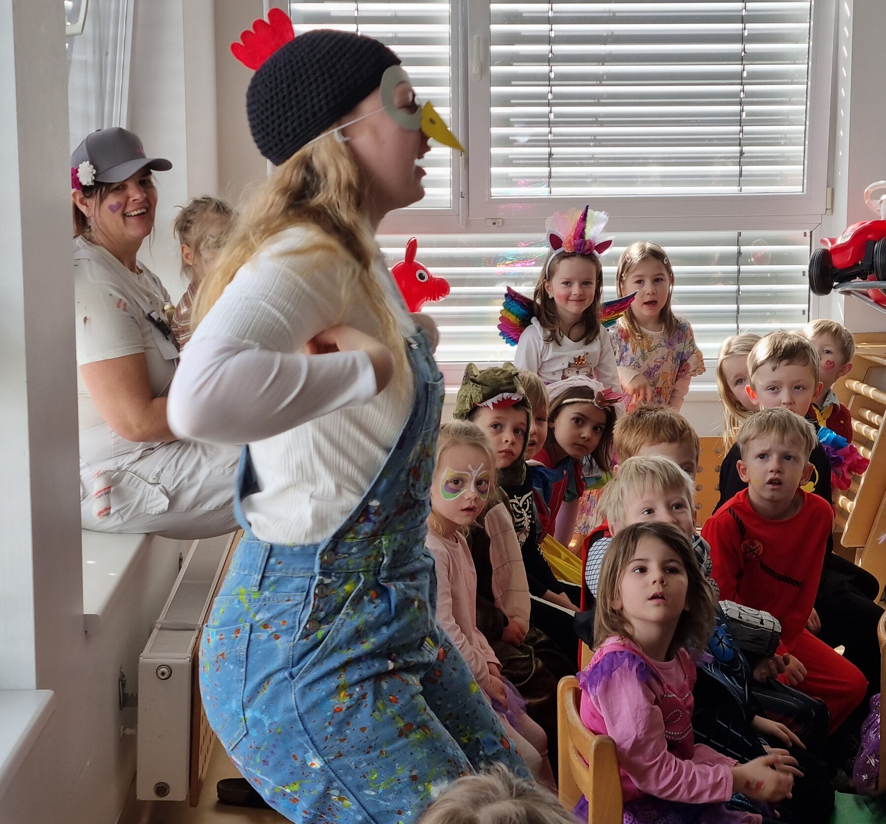 Die Faschingszeit ist eine bunte und lustige Zeit. Kinderschminken, basteln von Faschingsdekorationen und Verkleidungen standen bei uns im Kindergarten am Programm.