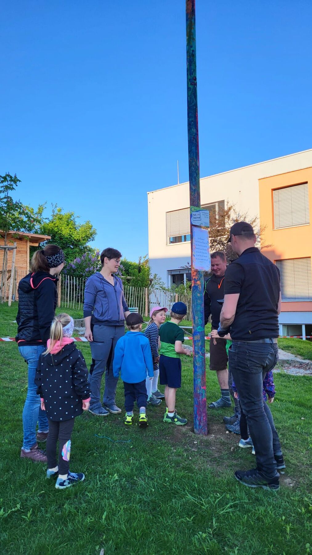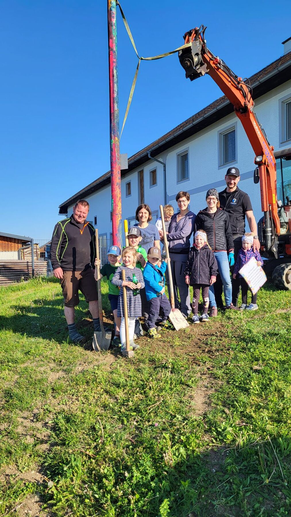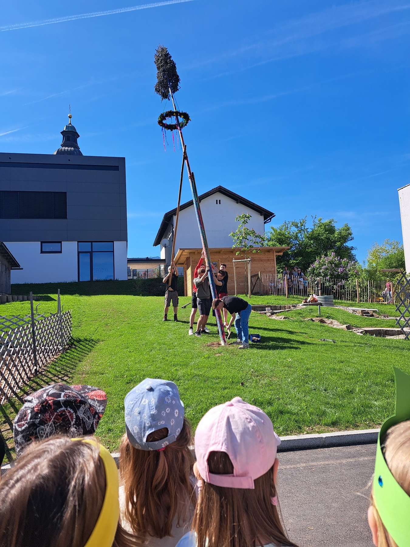 Am 7. Mai erhielten wir unseren Maibaum wieder zurück. Als kleine Entschädigung für den Diebstahl bekamen die Kinder ein Eis, das die sogenannten „Maibaumdiebe“ spendierten.