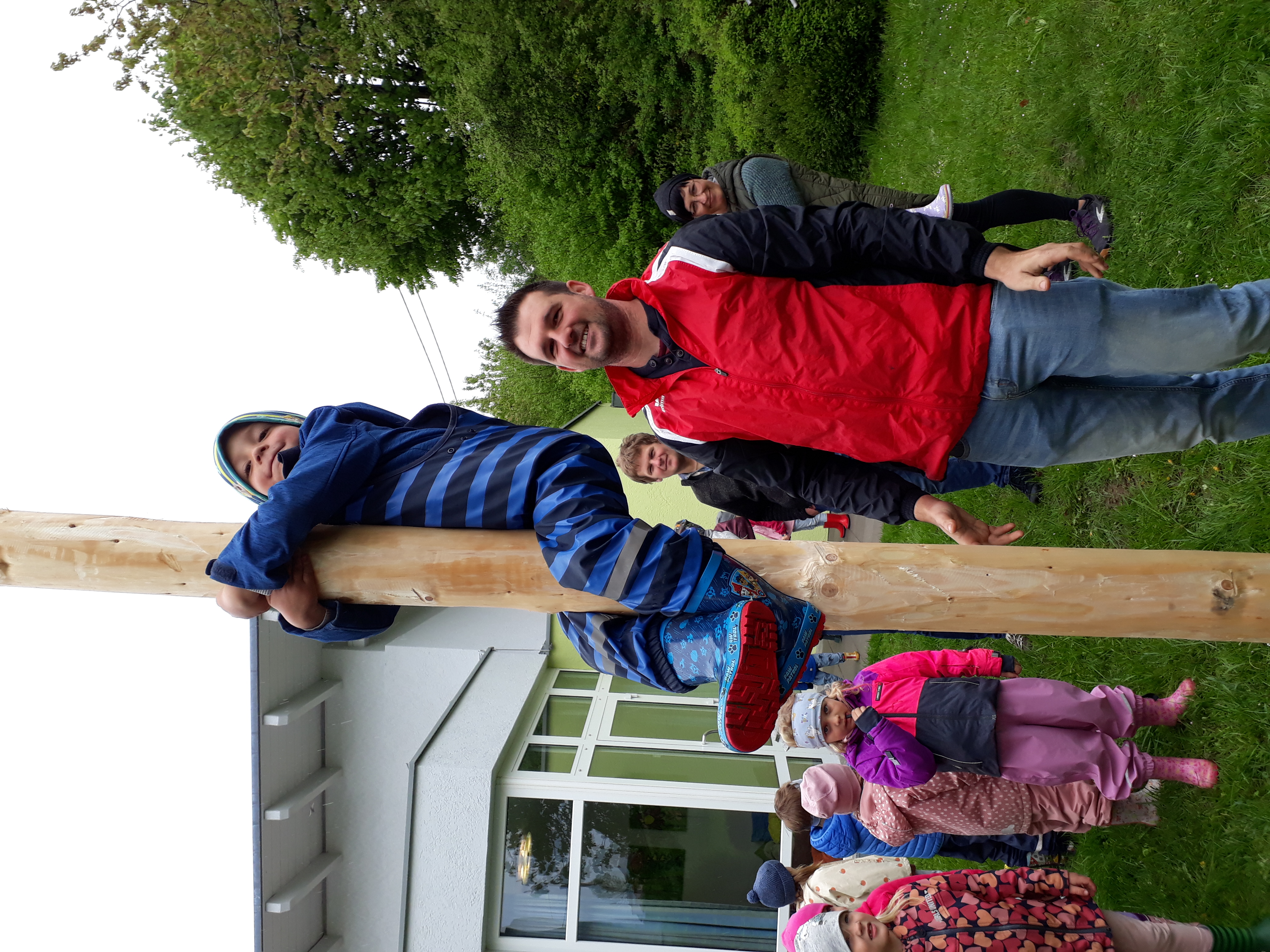 Nun stand der Maibaum zur Freude der Kinder wieder einige Tage bei uns im Garten, bis er ein zweites Mal gestohlen wurde!