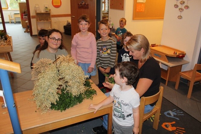 In diesem Jahr begleitete uns im Herbst das Thema „Vom Korn zum Brot“. Die Kinder gestalteten passend dazu eigene Erntedankkronen als Kopfschmuck.