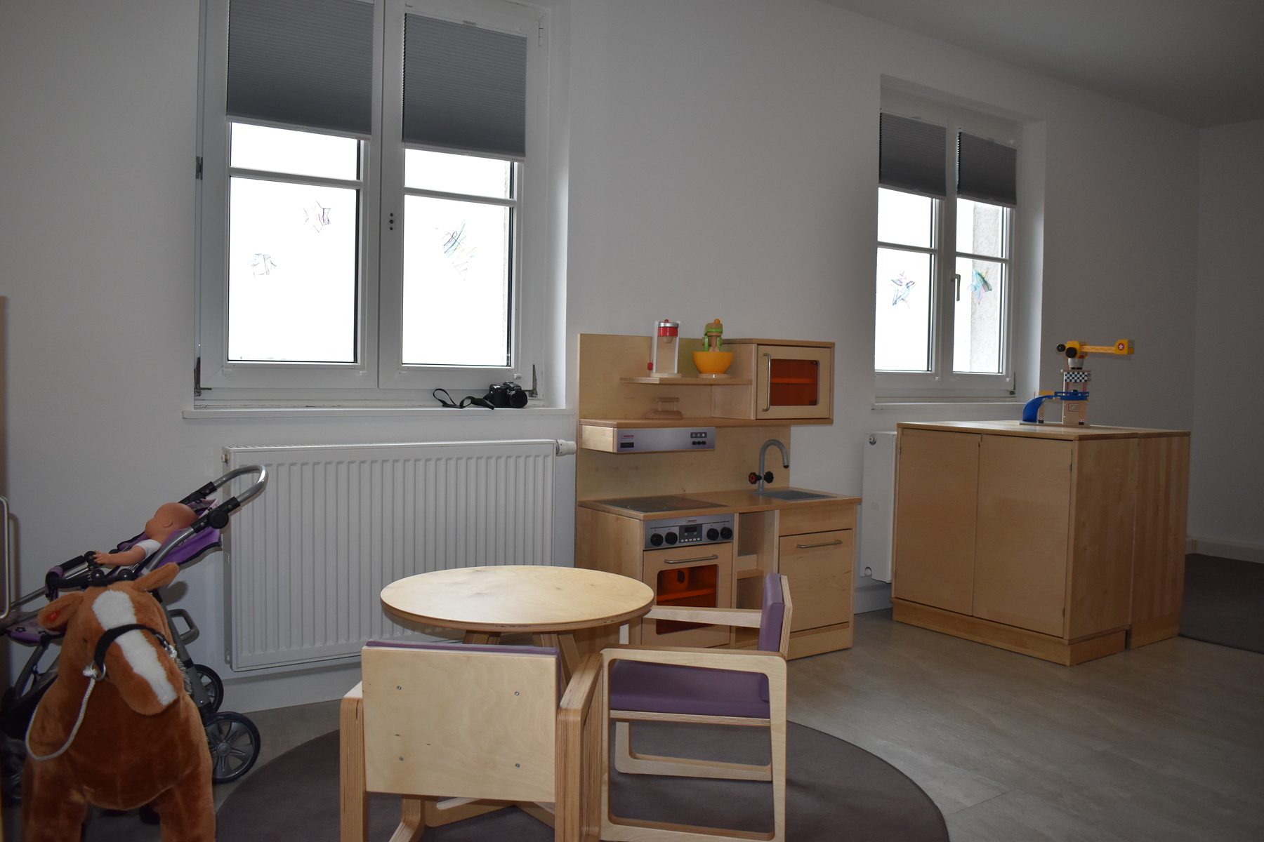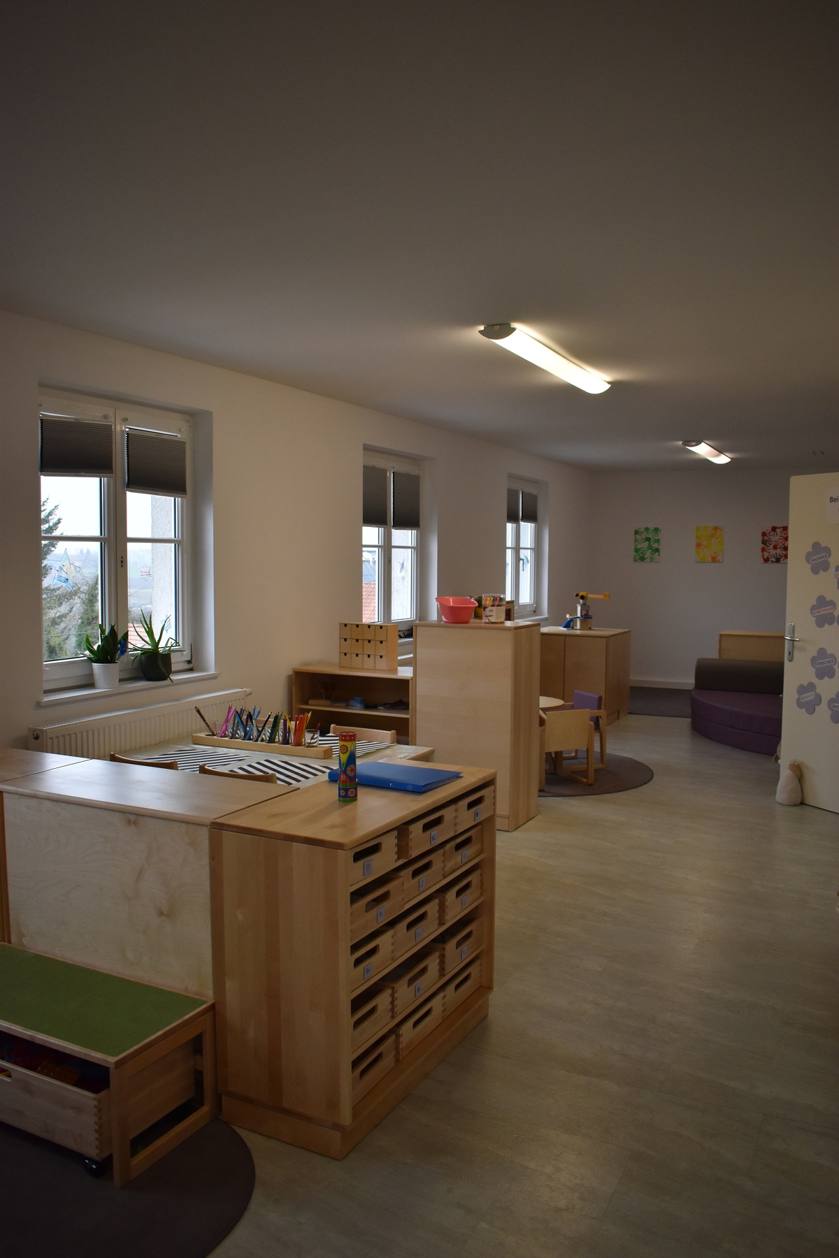 Eine weitere Kindergartengruppe ist im 1. Stock des Bauhofgebäudes gleich in der Nähe des Hauptgebäudes untergebracht. Den Kindern dieser Gruppe steht ein eigener Bewegungsraum zur Verfügung, den Garten nutzen sie gemeinsam mit den anderen Kindergartengruppe.