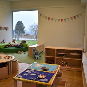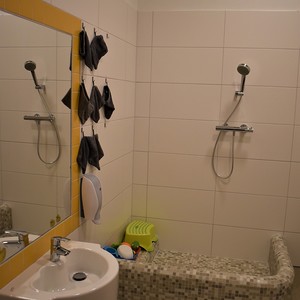 Jede Gruppe verfügt über einen Rückzugsraum, einen Waschraum und einer Garderobe.