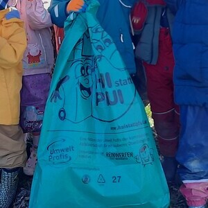 Die Kinder waren von dieser Geschichte sehr betroffen und begriffen schnell, wie wichtig es ist, gemeinsam Verantwortung zu übernehmen und Rücksicht aufeinander zu nehmen. Mit viel Engagement machten sie sich daher, ausgerüstet mit Handschuhen und einem großen Müllsack, als Umweltprofis auf den Weg, um Müll aufzusammeln und sich an der Flurreinigungsaktion der Gemeinde zu beteiligen.