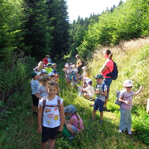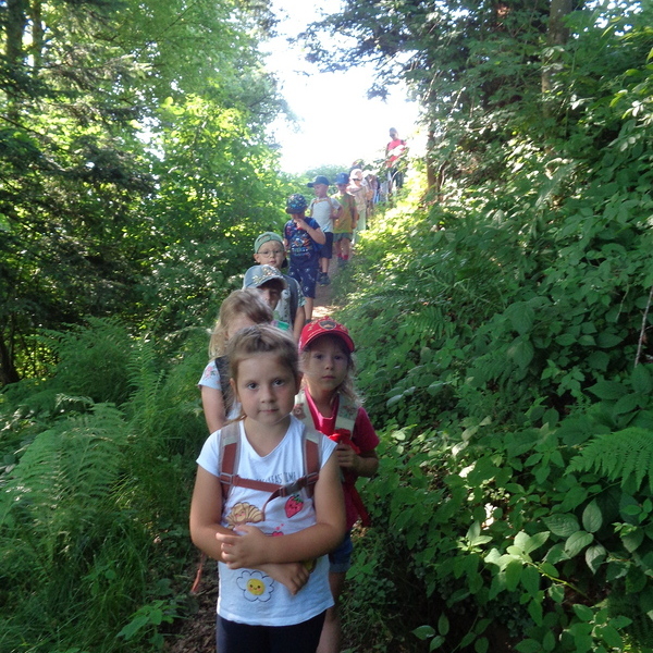 Gemeinsam starteten wir im Kindergarten. Bepackt mit unserem Rucksack ging es bei heißem Wetter los.
