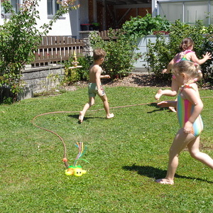 Endlich in Wesenufer angekommen, erwarteten uns verschiedenste Wasserspiele zum Abkühlen, Kuchen und ein Eis.
