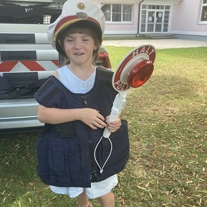 Der Polizist hat uns verschieden Sachen gezeigt. Verschiedene Schutzausrüstungen der Polizisten, was er alles am Gürtel trägt und natürlich hörten wir auch das Folgetonhorn und sahen das Blaulicht.