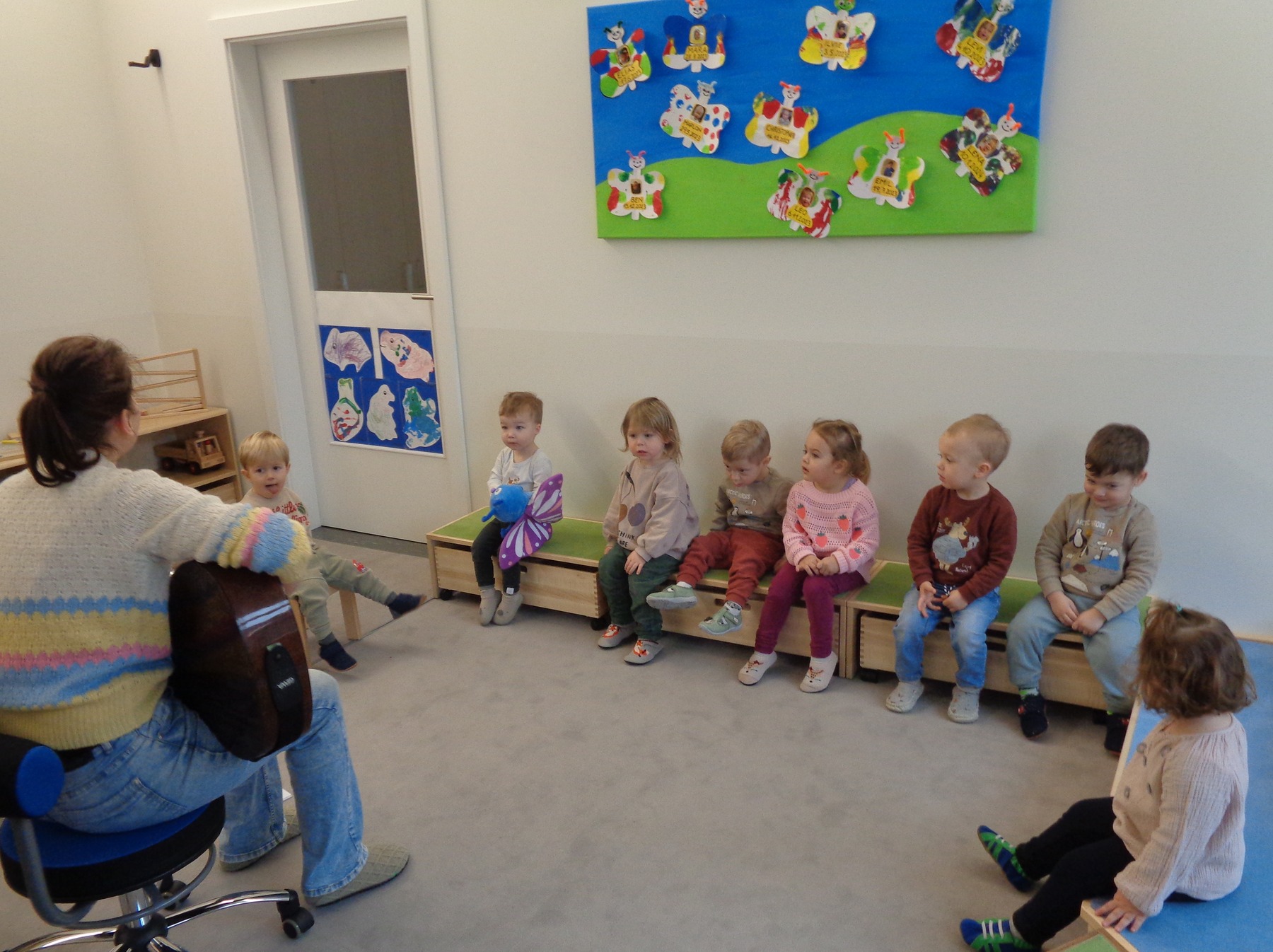 Wir haben uns schon gut kennengelernt, haben großen Spaß beim Spielen im soooo großartigen neuen Krabbelstuben-Raum – hier ein GROSSES DANKE an die Gemeinde und alle Beteiligten - und im tollen Bewegungsraum. Das gemeinsame Singen im Morgenkreis ist jeden Tag ein ganz besonderes Highlight für die Kinder.