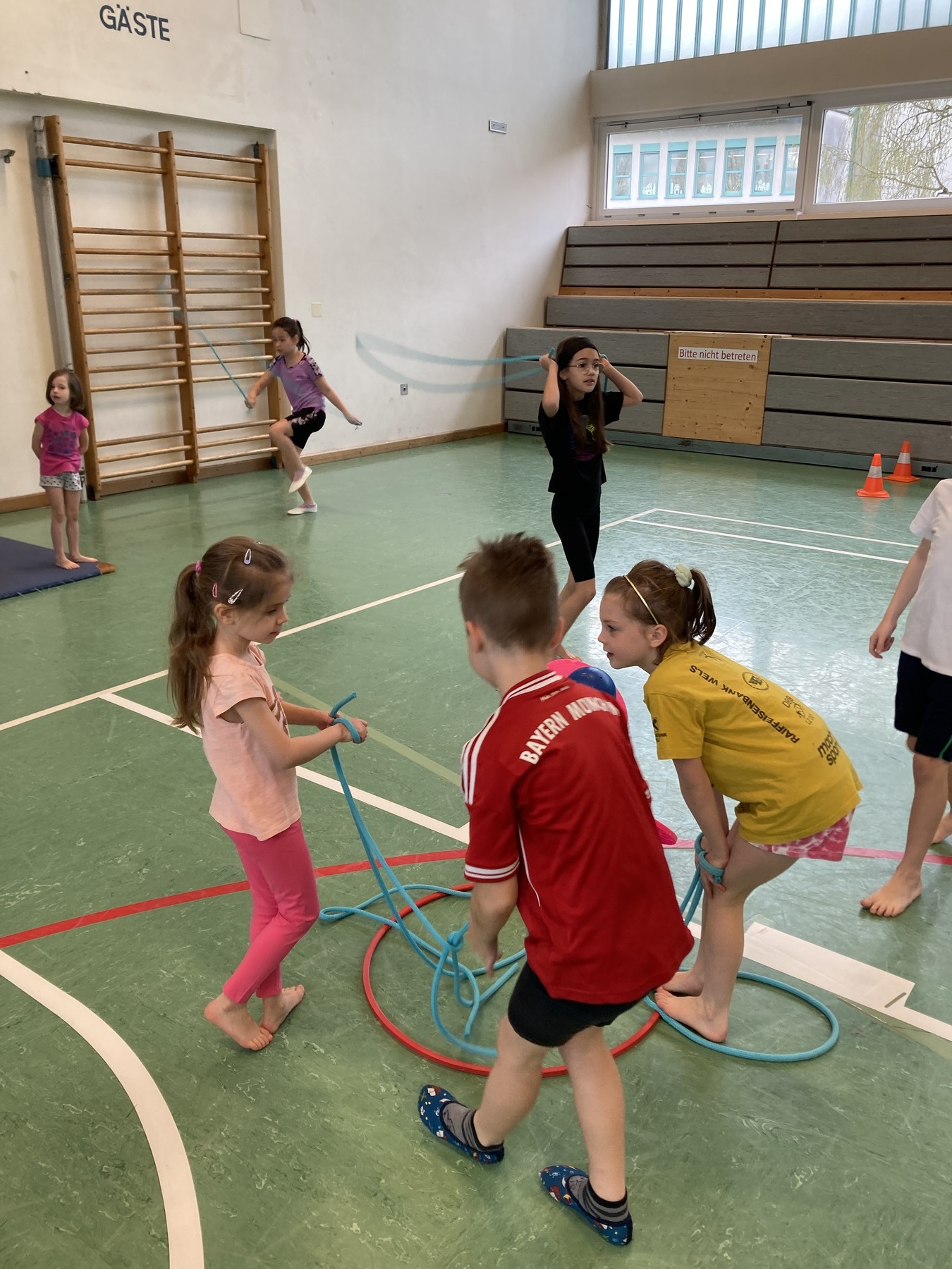 Bei unserem letzten Schulbesuch durften wir bei einer Turnstunde dabei sein.