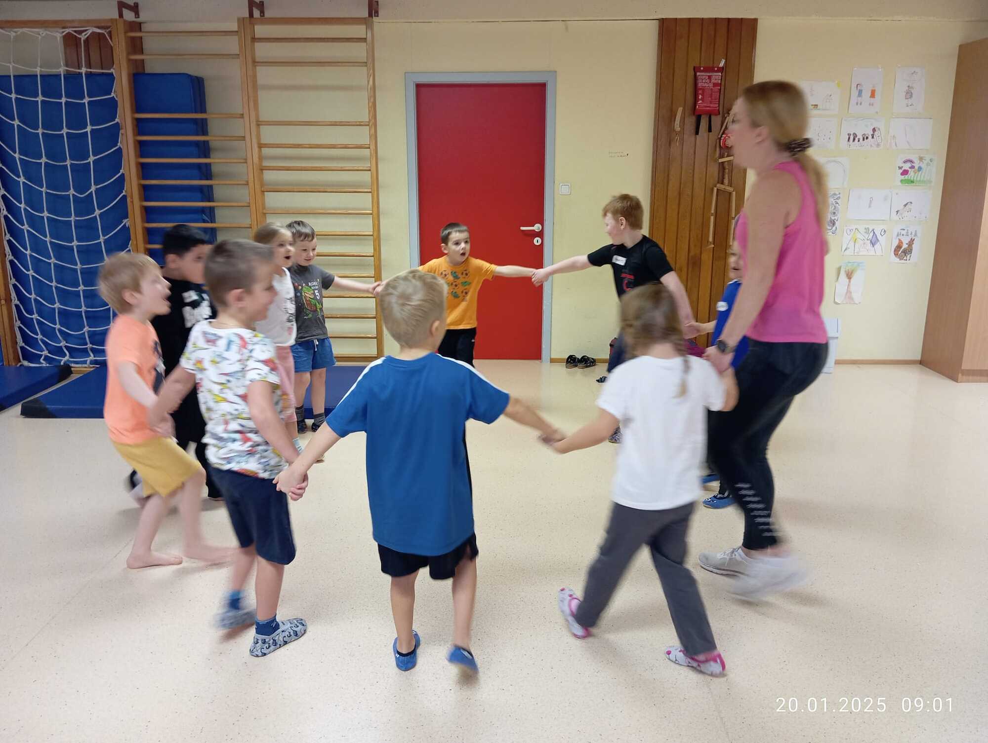 Projekt "Dinospaß" der Schulanfänger - Jan 2024 Seit Jahren dürfen wir nun für unsere Schulanfängerkinder das Projekt „Dino- Spaß“ durchführen. Dazu kommt Projektleiterin Martina an zehn Vormittagen in den Kindergarten, um mit unseren Großen zu Turnen und Bewegungsspiele durchzuführen.