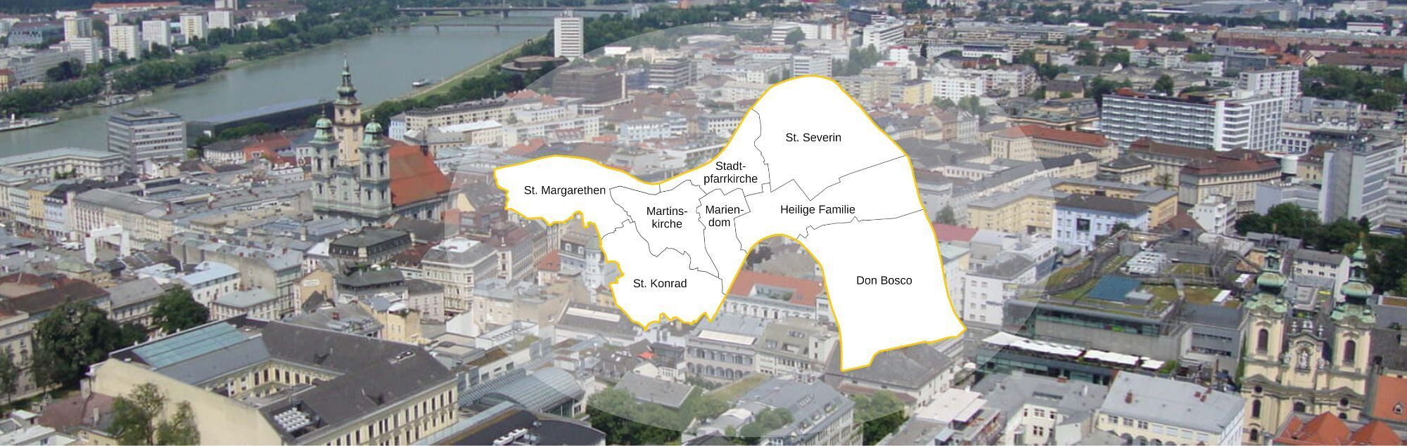 Zur Pfarre Linz-Mitte gehören die Pfarrgemeinden Don Bosco, Heilige Familie, Mariendom, Martinskirche, St. Konrad, St. Margarethen, St. Severin und Stadtpfarrkirche.