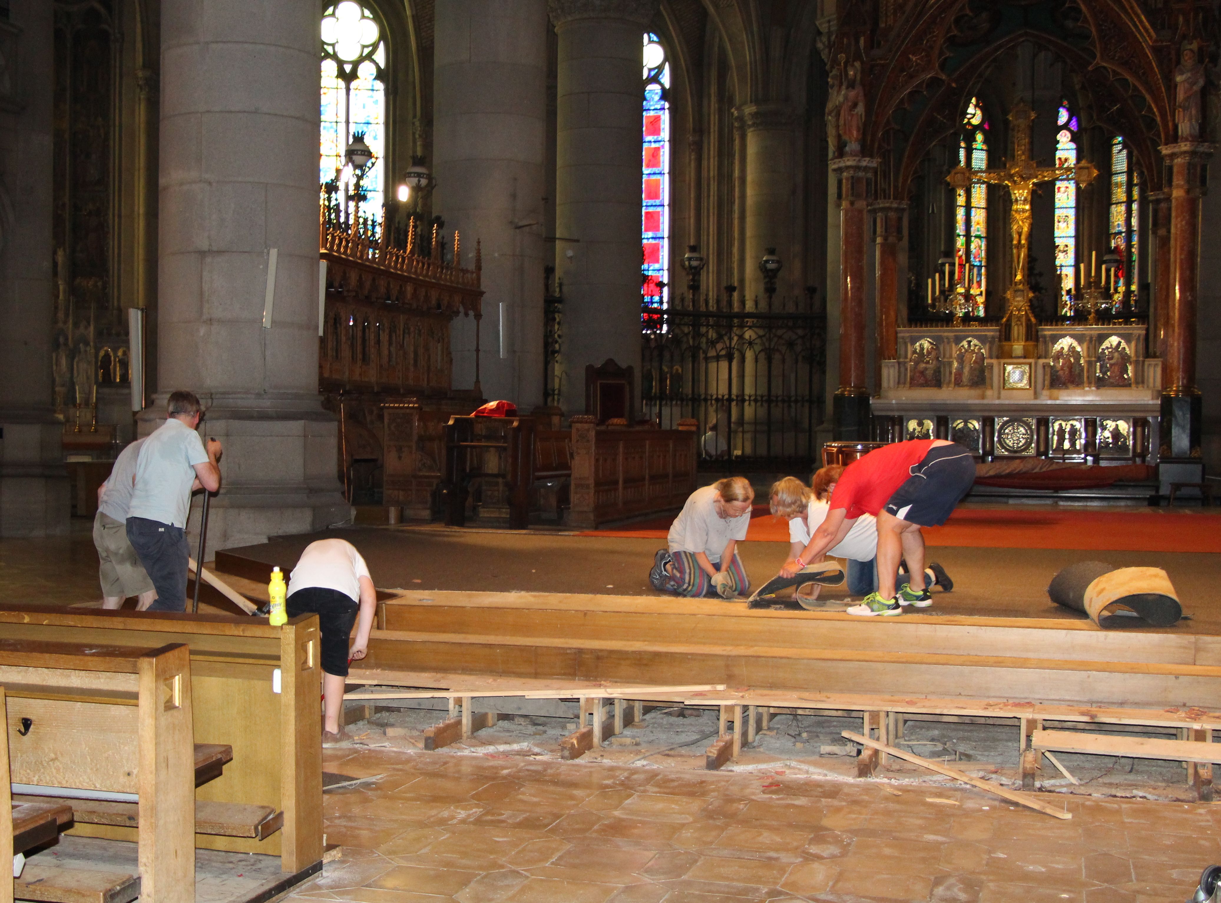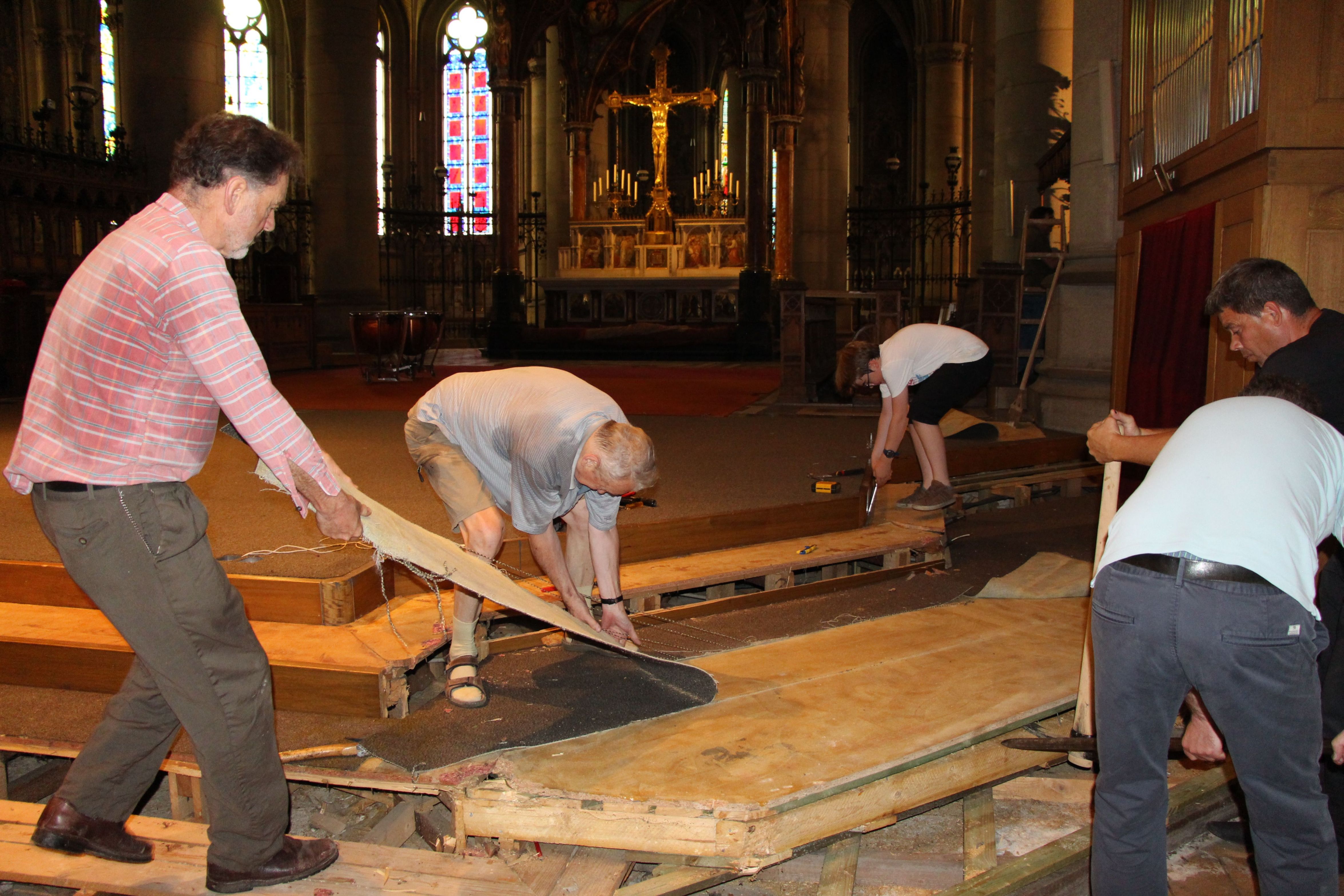 Foto 3: Schweißtreibende Abbauarbeiten im Linzer Mariendom.
