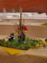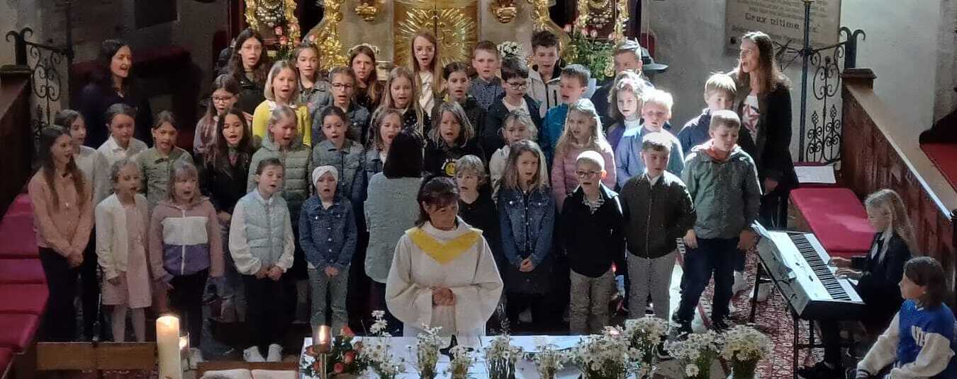 Leider verhinderte strömender Regen den feierlichen Einzug in dir Kirche - mit Erntedankkrone, Vereinen und Musikkapelle. Somit wurde der traditionelle Erntedankgottesdienst ausschließlich in der Kirche gefeiert.
