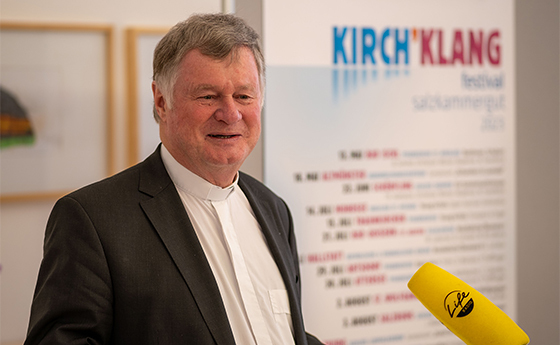 Festivalleiter Martin Haselböck führte durch die Pressekonferenz. „Kirch’Klang setzt sich musikalisch mit den Welten des Salzkammerguts auseinander: die Spannungen der Religionskriege, die Welt der Aufklärung und der musikalischen Romantik, selbst die Historie der aus der Region Vertriebenen werden in unseren Konzerten in Hallstatt, am Attersee, in St. Wolfgang, Salzburg, Bad Goisern und Mondsee thematisiert. Heutige Problemstellungen finden ihren Ausdruck in Symposien aber auch in den speziell geschriebenen Kompositionen junger KomponistInnen, die beim traditionellen Konradfest erklingen“, erläuterte Haselböck und dankte der katholischen Kirche als Gastgeberin.