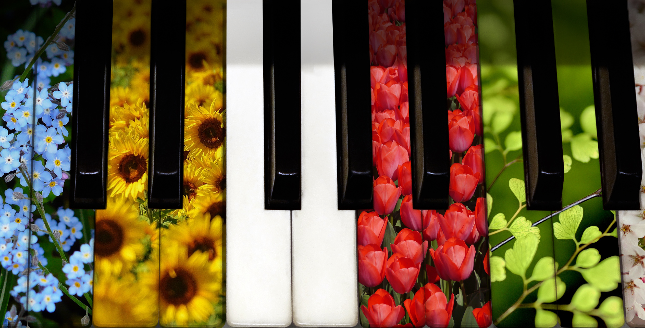 Linzer Orgelfrühling 2017. (© Stefanie Petelin (Tasten), Hans/pixabay.com/CC0 1.0 (Vergissmeinnicht), Alexas_Fotos/pixabay.com/CC0 1.0 (Sonnenblumen), auntmasako/pixabay.com/CC0 1.0 (Tulpen), jarekgrafik/pixabay.com/CC0 1.0 (Blätter), greenkoma/pixabay.com/CC0 1.0 (Blüten), Patricia Lang (Fotomontage).)