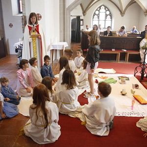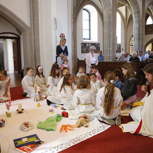 Beim Familiengottesdienst zum Dreifaltigkeitssonntag konnten die anwesenden Kinder durch verschiedene Alltagsgegenstände Gott als einem Gott in drei Personen auf die Spur kommen.