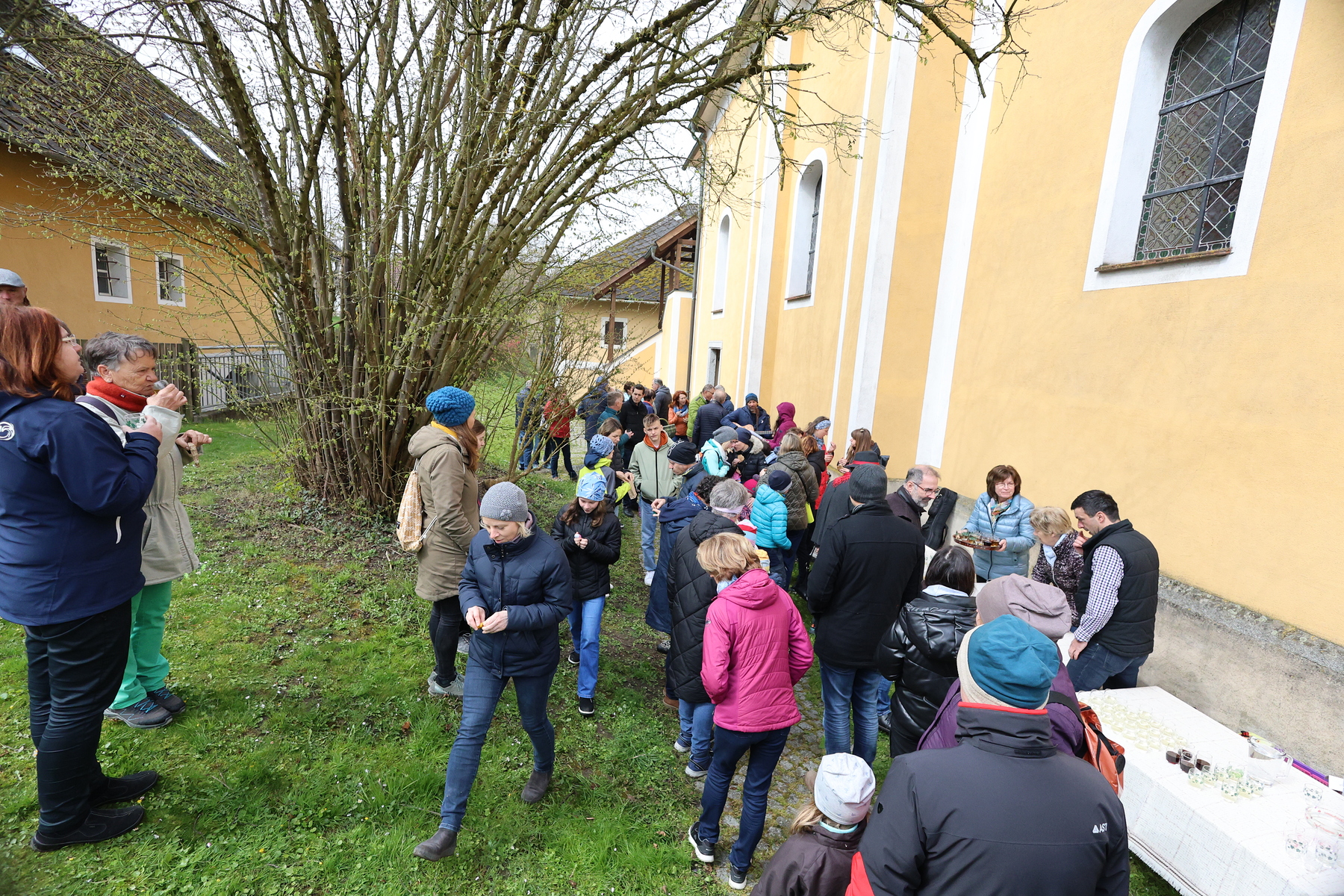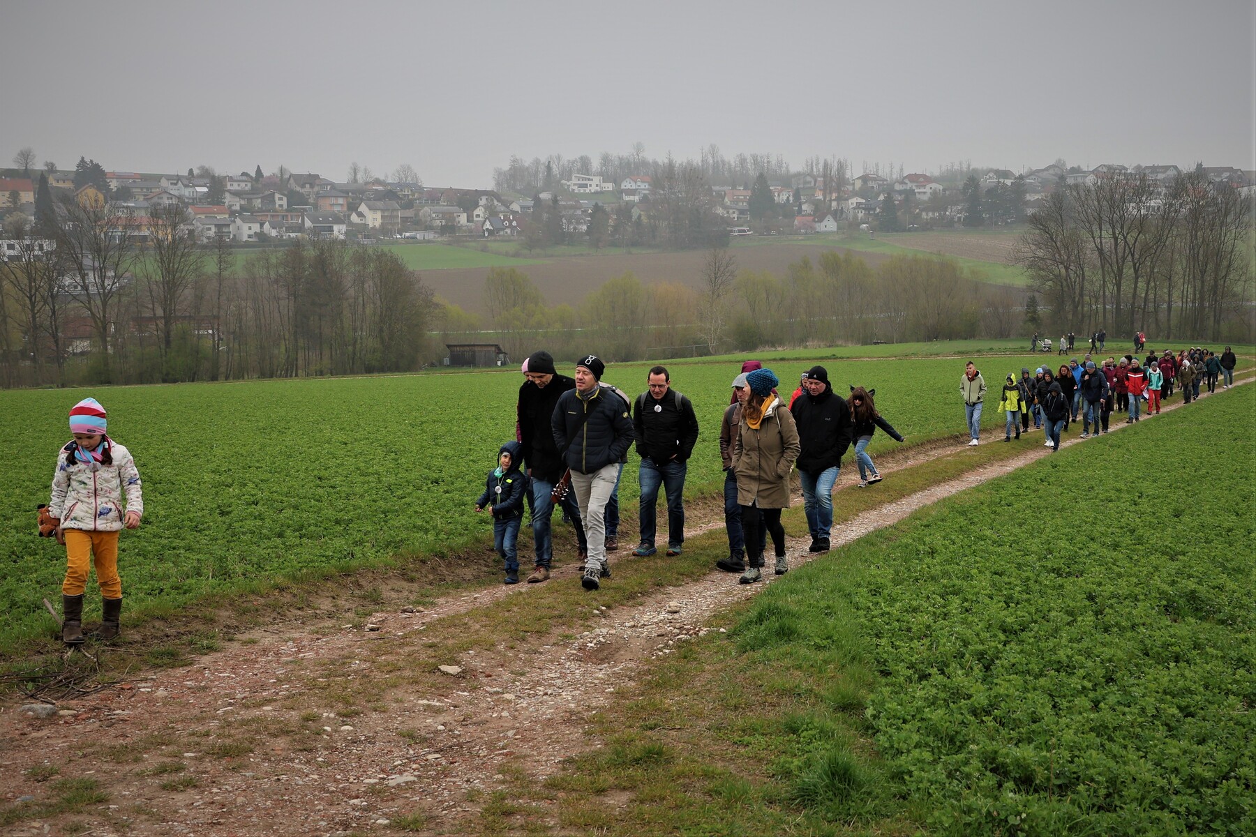 Treffpunkt war unsere Dorfkapelle in Straßham. in der erwachenden Natur ging es singend, redend und betend in mehreren Stationen zu unserer Filialkirche St. Anna. Unsere pastorale Mitarbeiterin Martina Wöss, das FaGoDi-Team von Schönering und Teile unseres Fachteams Kinder- und Jugend haben es ermöglicht, dass wir als Kinder, Jugendliche und Erwachsene, als Einzelne wie als Familien, bereichert den Emmausjüngern nachgehen konnten. Nach dem gemeinsamen Gottesdienst in der sehr gut gefüllten Filialkirche St. Anna wurde wir in einer Agabe mit Fladenbrot, Wasser, Apfelsaft und Wein gestärkt.