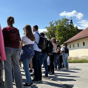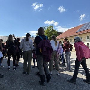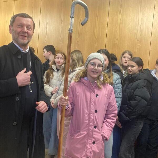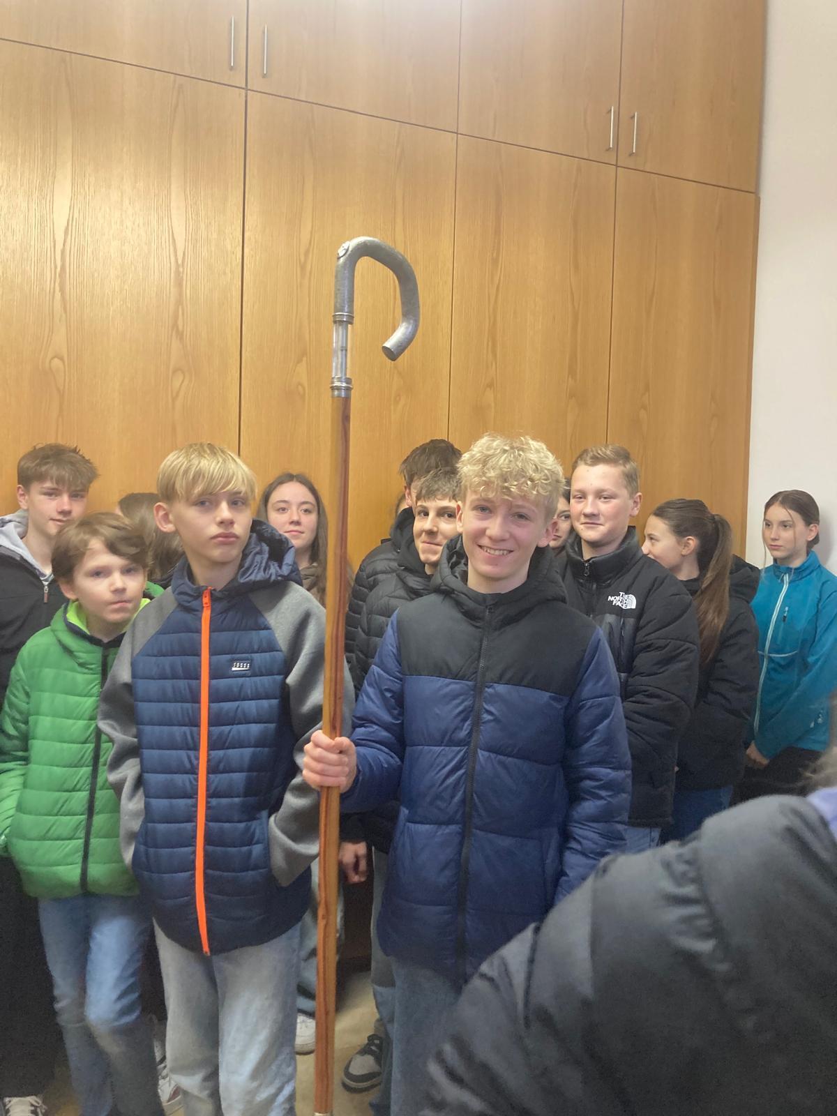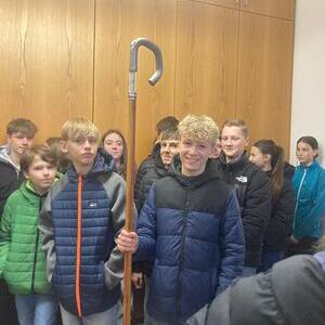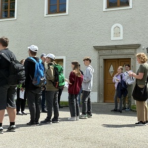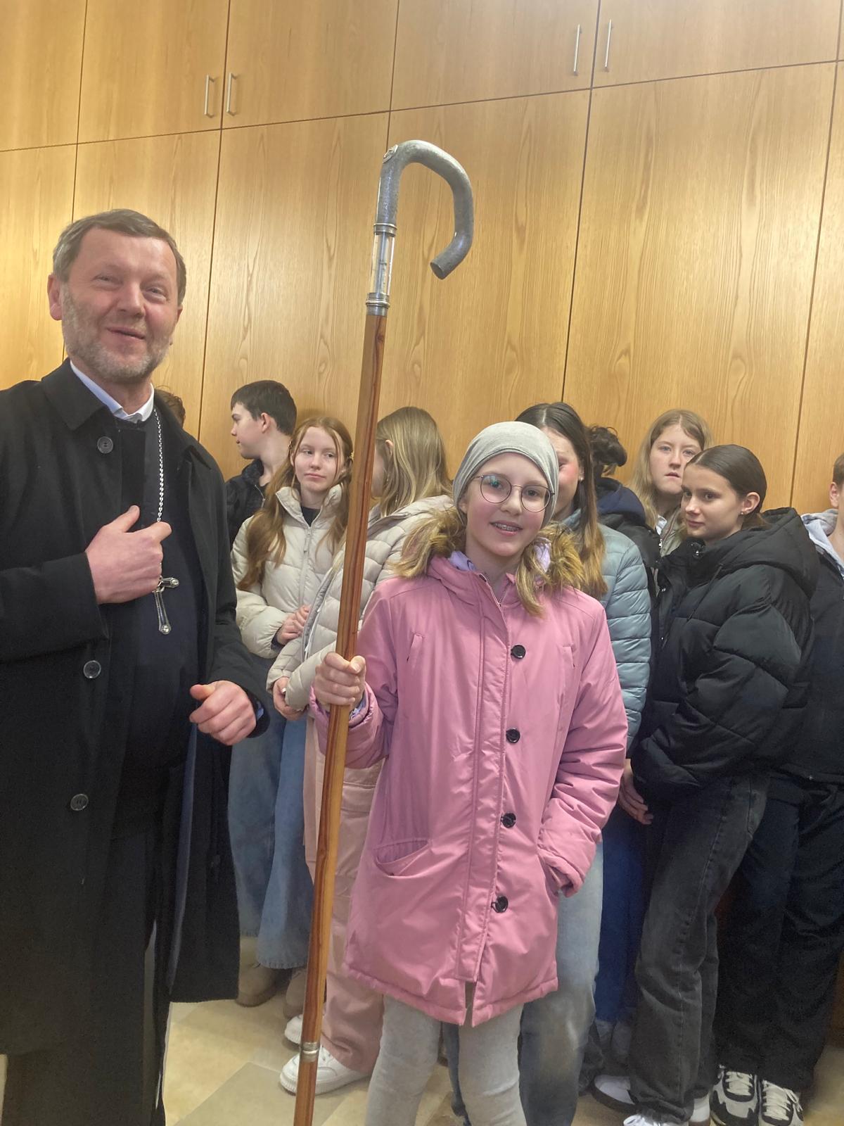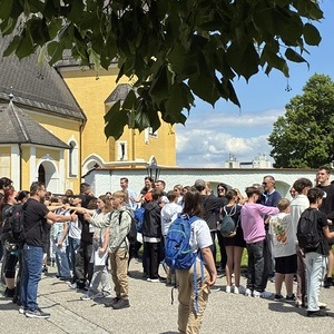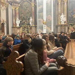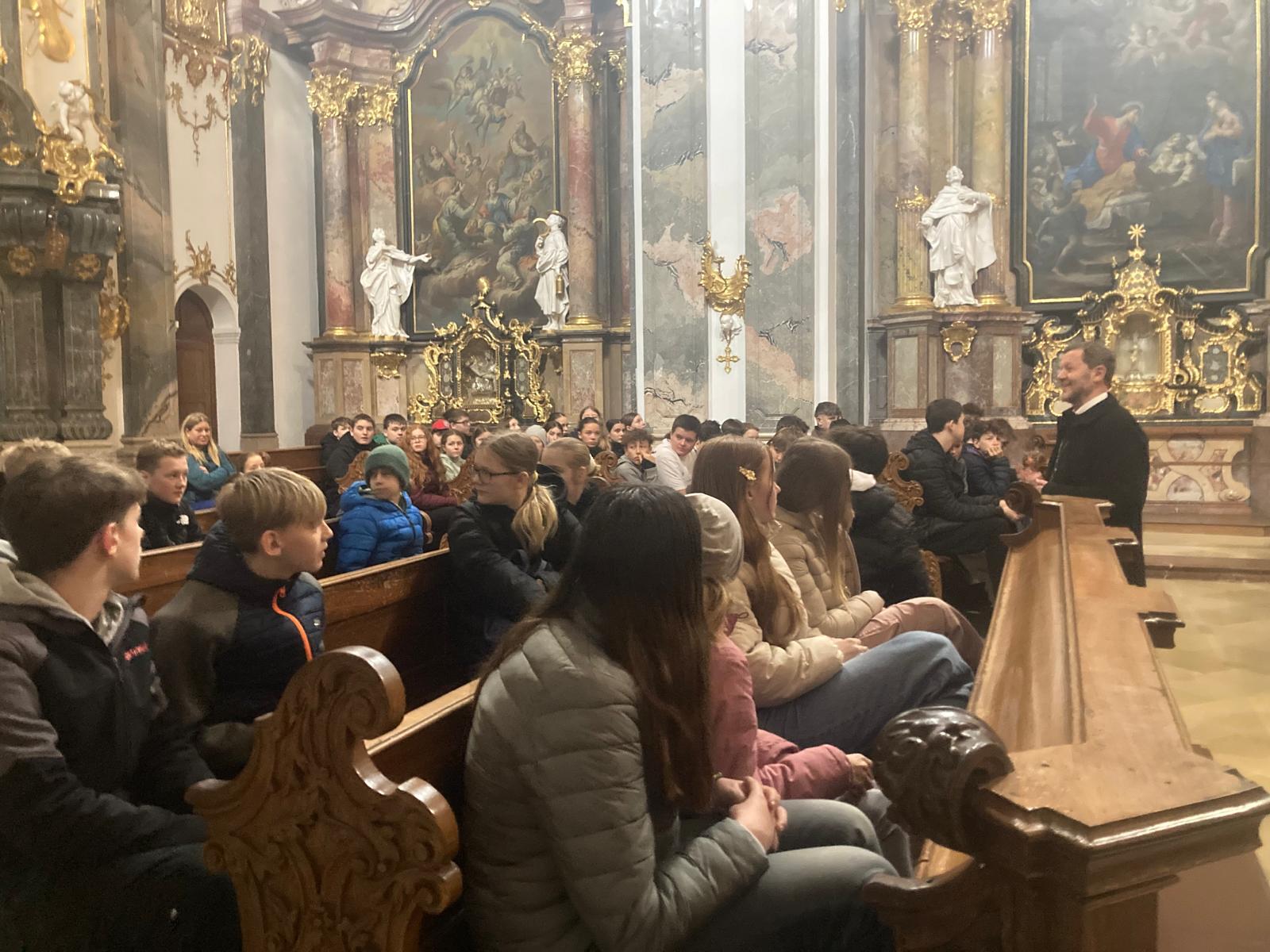 Am 29. März haben wir uns mit dem Abt des Stiftes Wilherin, Reihold Dessl, getroffen. An diesem Tag führte er uns durch die Stiftskirche und die Sakristei und zeigte uns Besonderheiten des Stiftes sowie seine „Ausrüstung“ des Firmspenders.