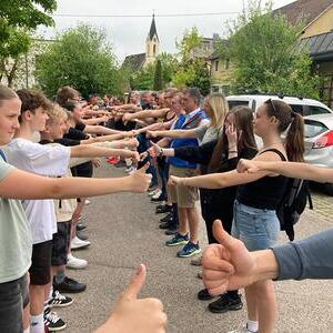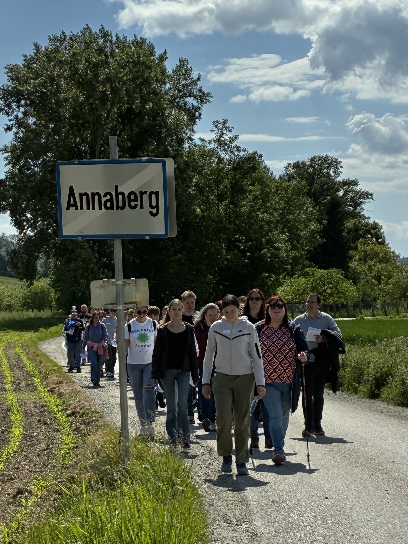 Am 24. Mai hatten wir dann unseren Firmtag im Pfarrzentrum. Bei verschiedenen Workshops haben wir uns inhaltlich mit verschiedenen Themen auseinandergesetzt: „Meine Talente und Fähigkeiten“, „Mein Gottesbild“, „Der Hl. Geist als Verbinder“ und „Zerbrochen – Versöhnt“. In der Mittagspause genossen wir das wunderbare Buffet, das wir dank der Hilfe einiger Eltern zusammenstellen konnten. Um 14 Uhr kamen dann die Paten und Patinnen dazu und wir machten uns zur gemeinsamen Wanderung zur Annabergkirche auf. Unterwegs gab es verschiedene Impulse und Gesprächseinladungen, um die Pat*innen–Firmling –Beziehung zu stärken. Am Ende des Tages konnten wir uns noch mit der mitgebrachten Jause stärken. Vielen Dank den lieben Köch*innen!!