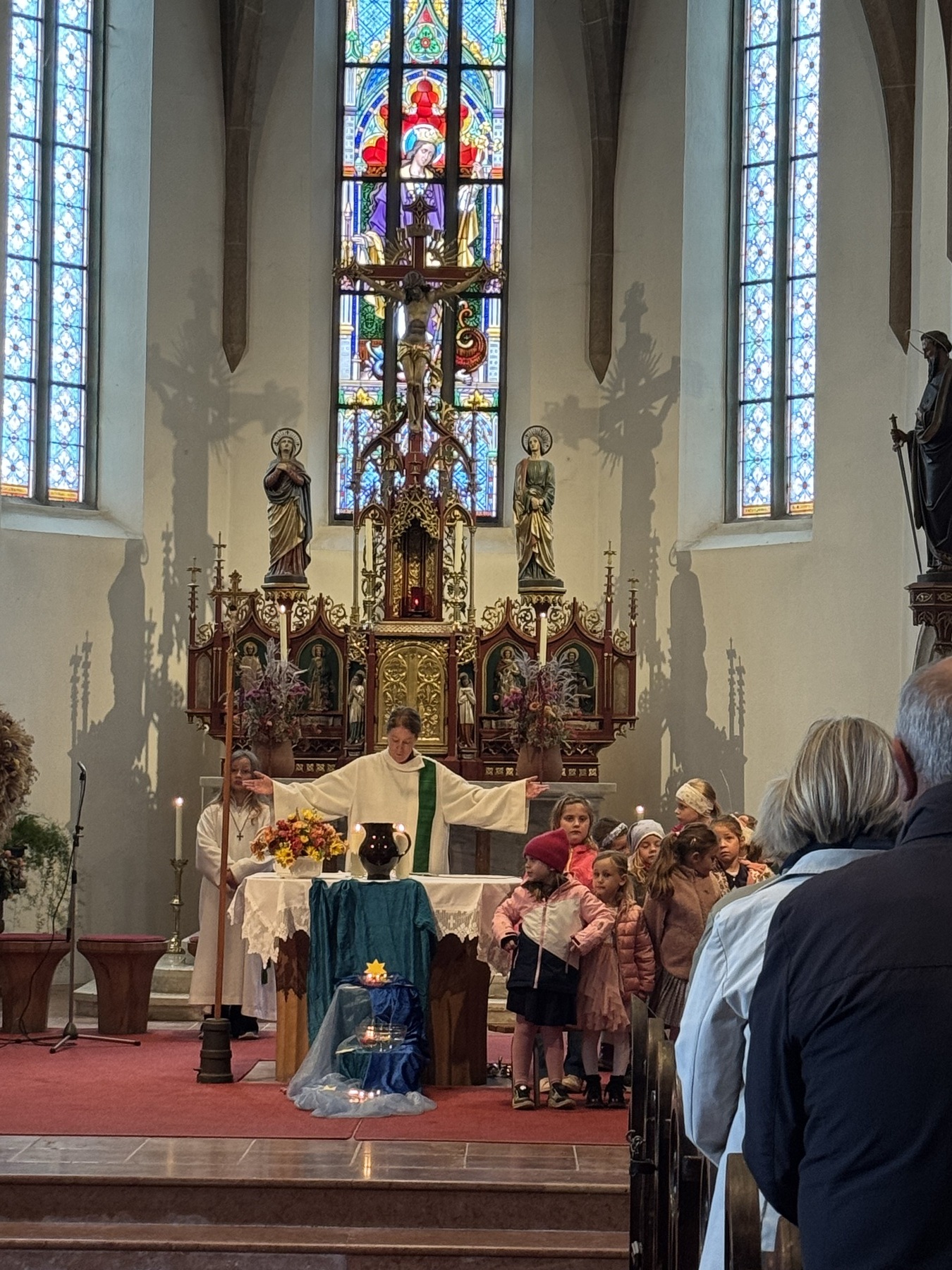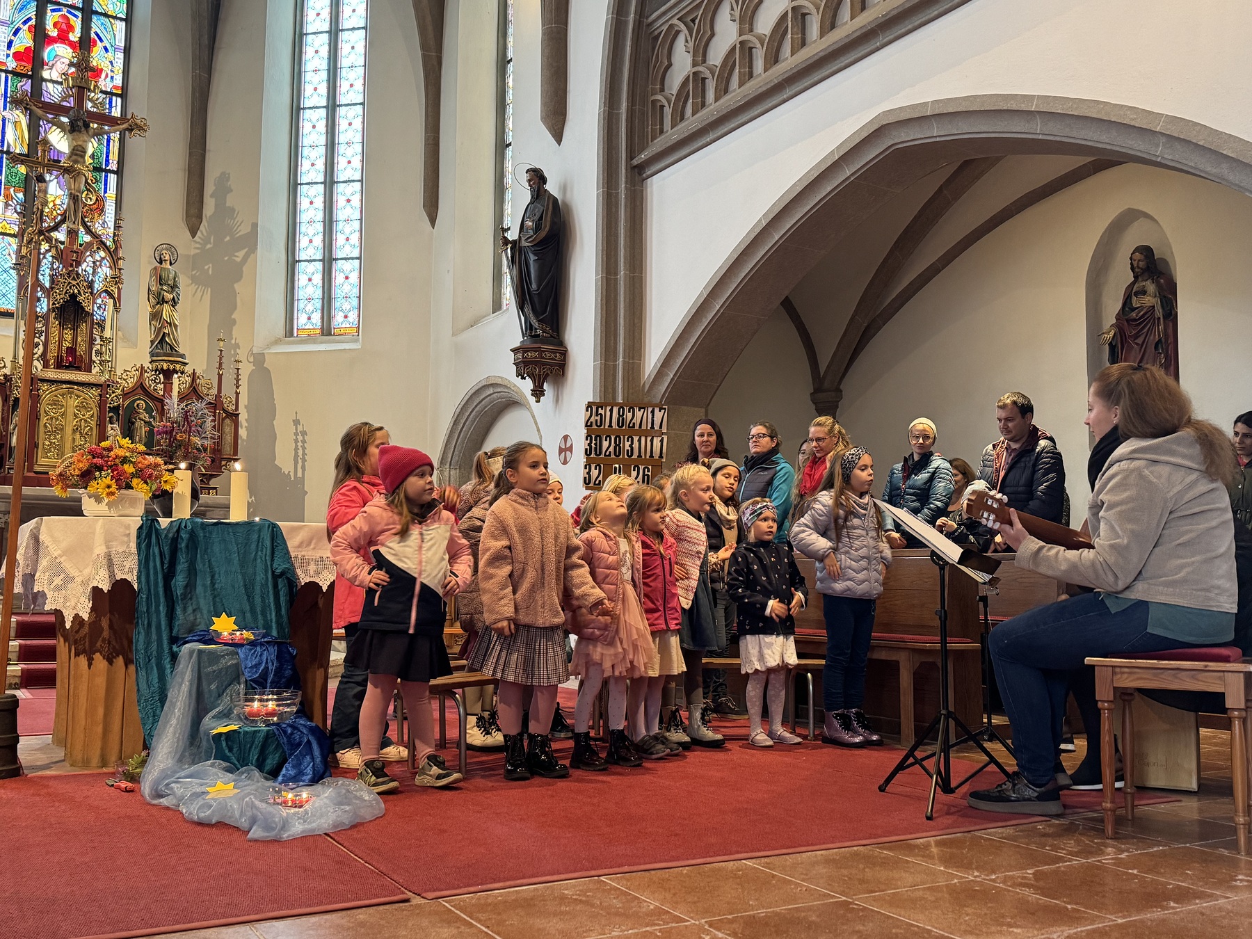 Die Kinder des Kinderchores „Regenbogenkids“ unter der Leitung von Martina Hutterer und Regina Schurm haben mit Begeisterung gesungen und so manche Kirchenbesucher zum Mitsingen angeregt.