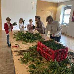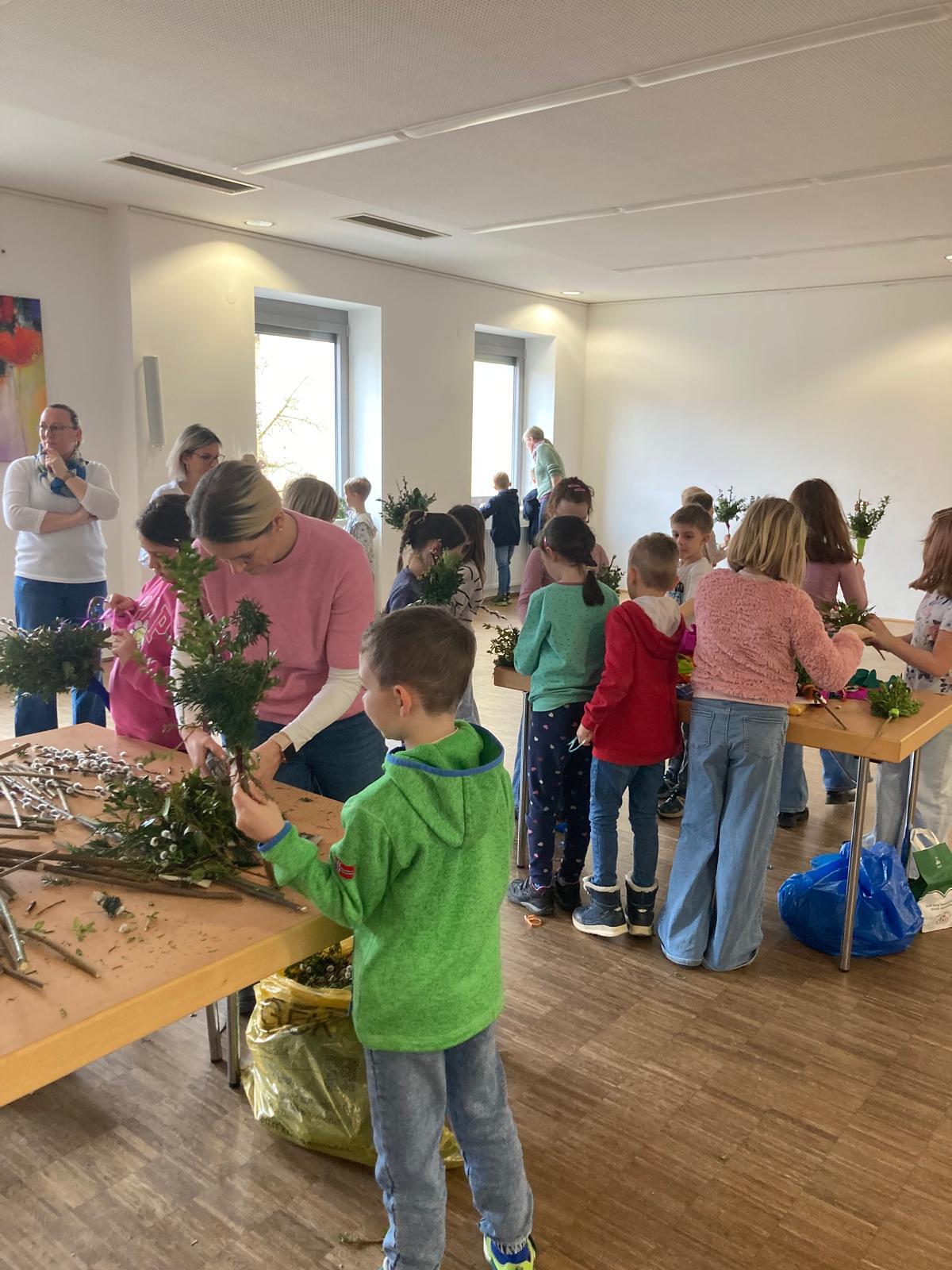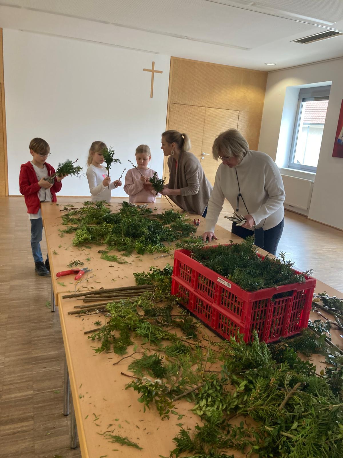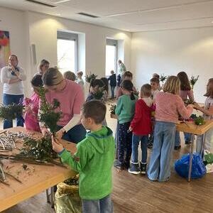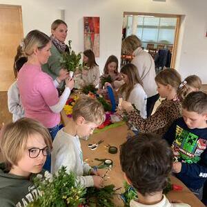 Mit viel Freude und Eifer trafen sich unsere Erstkommunionkinder im Pfarrzentrum Alkoven, um gemeinsam mit den Tischmüttern Palmbuschen für den Palmsonntag zu binden.