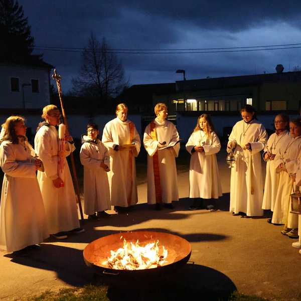 In der Feier der Osternacht wird das Feuer außerhalb der Kirche entfacht und die Osterkerze daran entzündet. Dieses Licht wird anschließend in die dunkle Kirche getragen und von Kerze zu Kerze weitergegeben – ein starkes Zeichen dafür, dass sich Hoffnung und Leben ausbreiten.