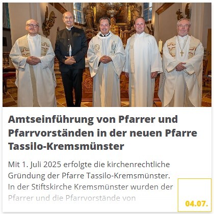 Die neue Pfarre Tassilo-Kremsmünster wurde gegründet, und der Pfarrer und die Pfarrvorstände in ihr Amt eingeführt.