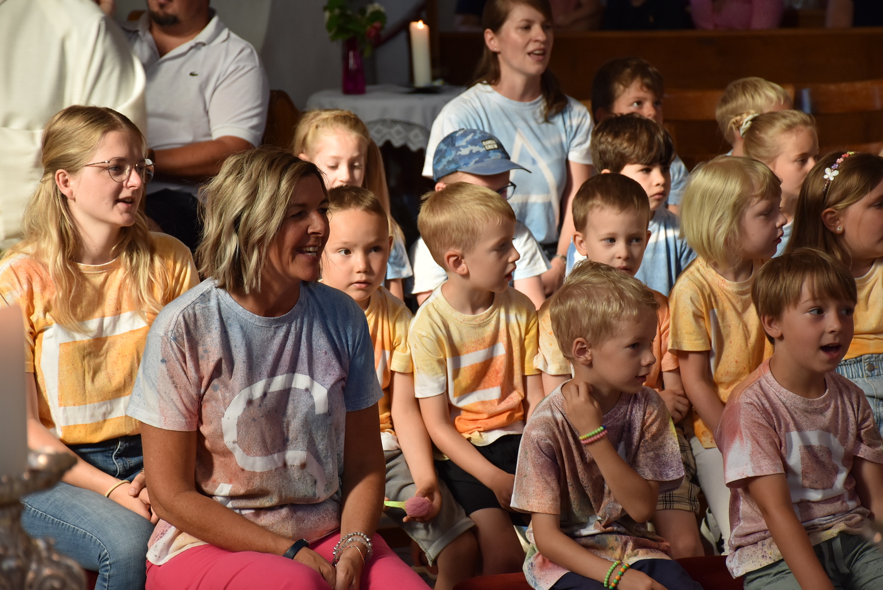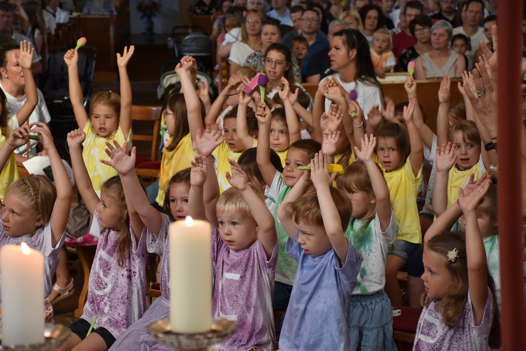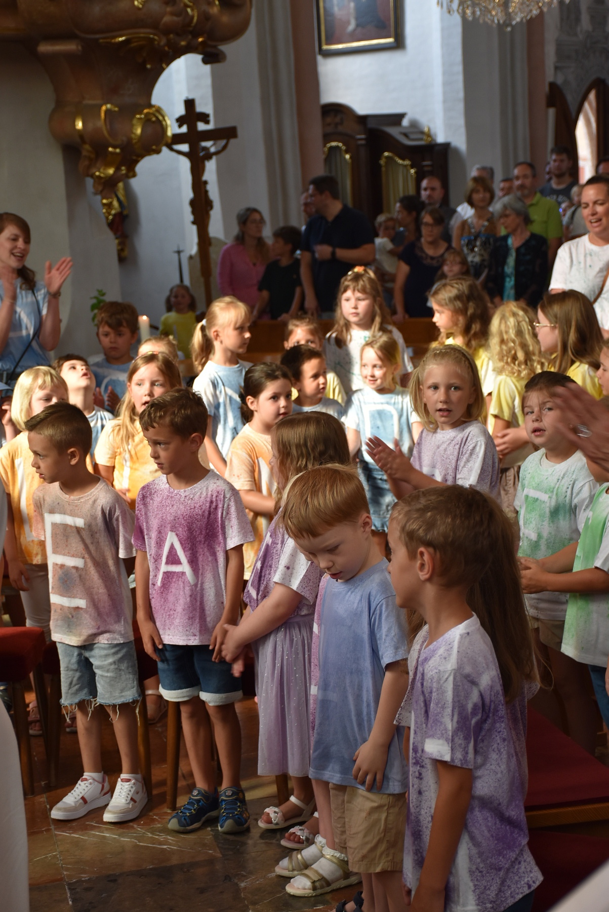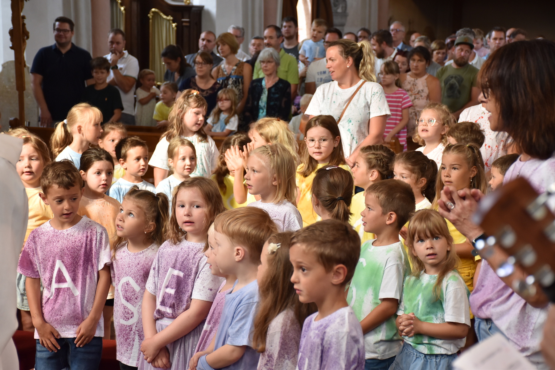 "Komm her, freu dich mit uns".... das war besonders schön, weil so Familien mit Kindern da waren. Die Kinder und Kindergärtnerinnen gestalteten den Gottesdienst mit.