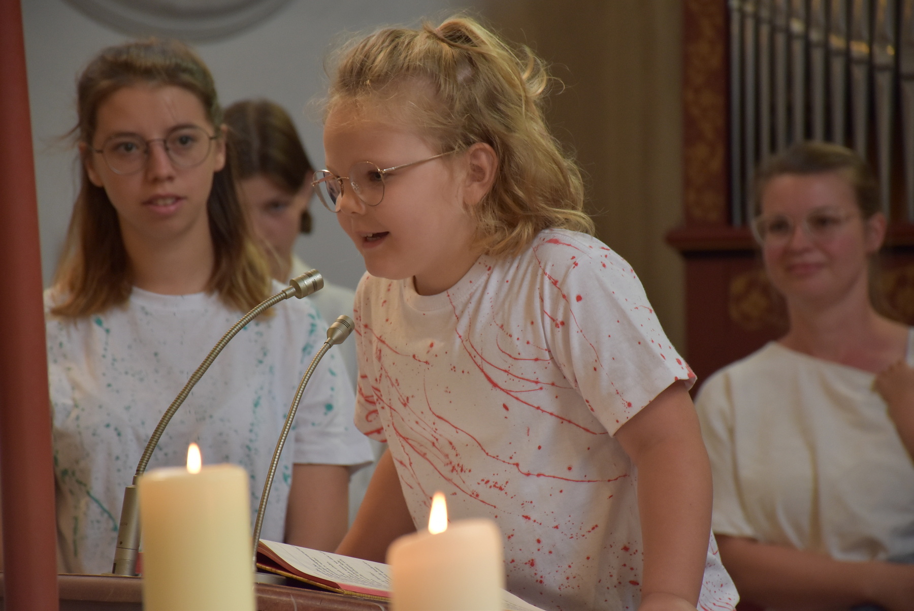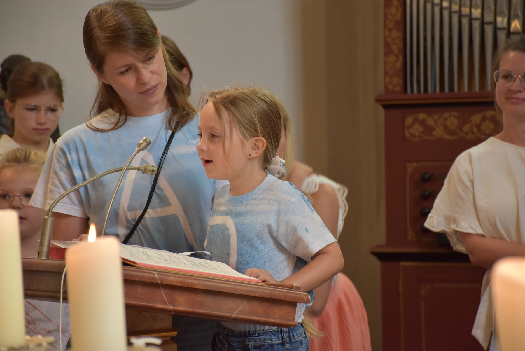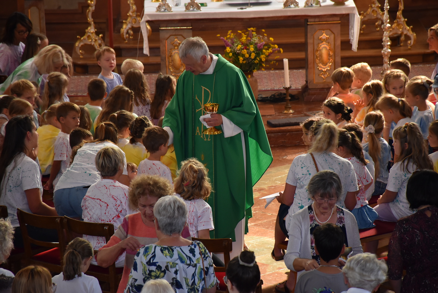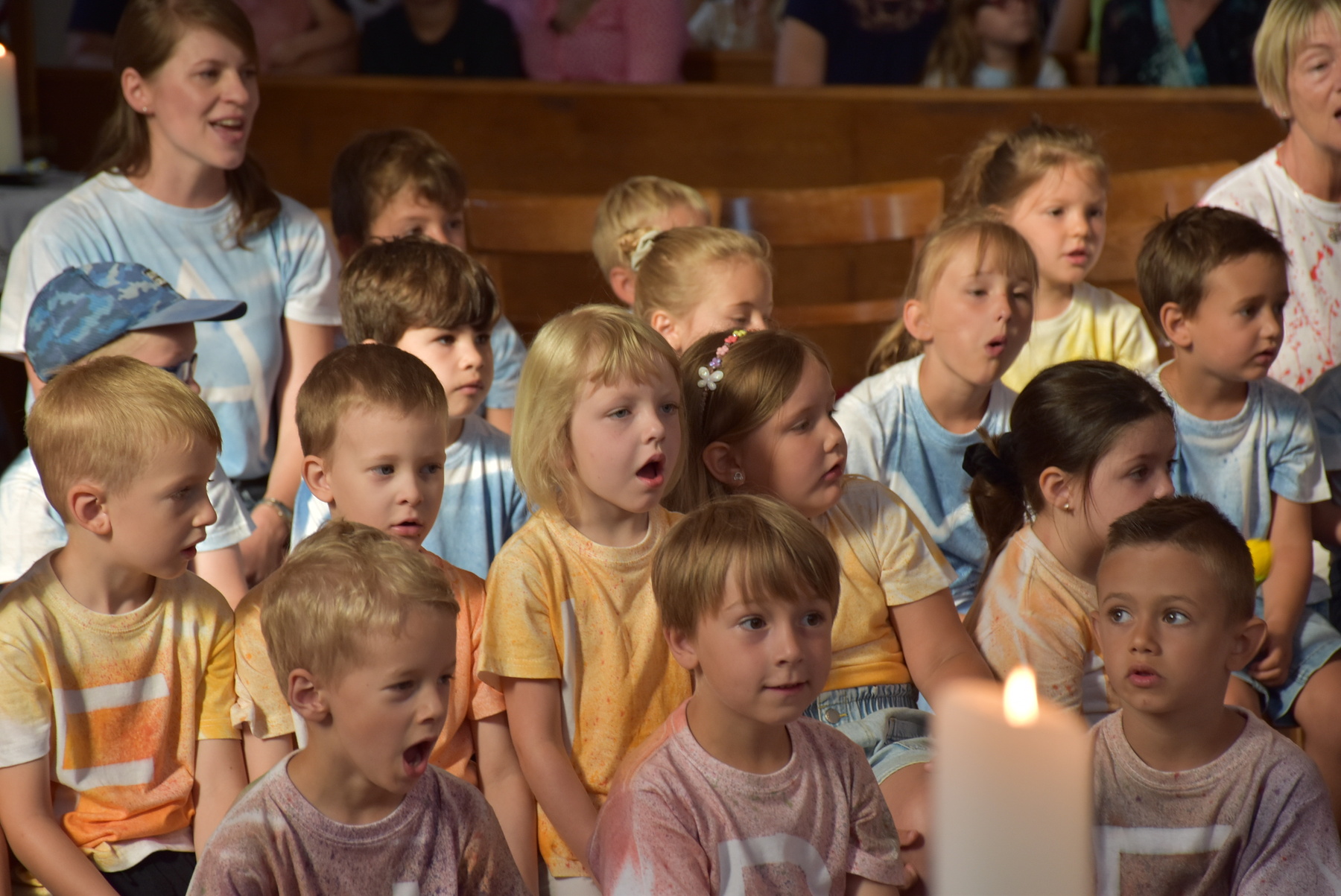 "Komm her, freu dich mit uns".... das war besonders schön, weil so Familien mit Kindern da waren. Die Kinder und Kindergärtnerinnen gestalteten den Gottesdienst mit.