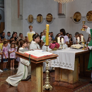 Das Evangelium passte zufällig zum Fest: JESUS erweckt das Mädchen zum Leben. Im Griechischen "to paidion" - das Kind, davon "Pädagogik". JESUS, der vollkommene Pädagoge.