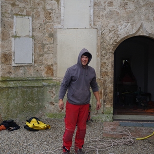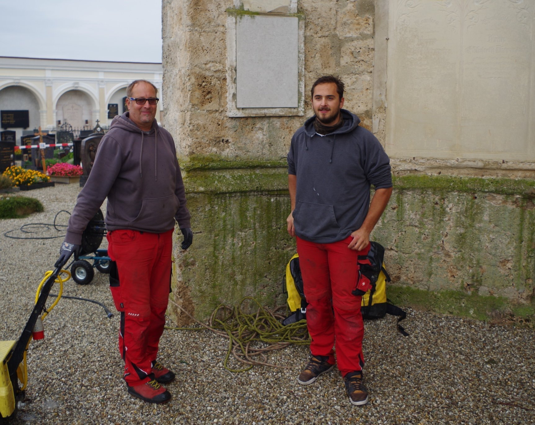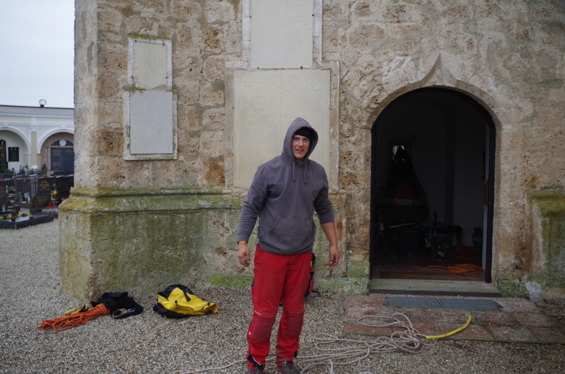Ich danken den Arbeitern, chronologisch, wie sie gekommen sind: Die ersten Seile hat Philipp montiert, dabei war Peter, dann kamen Markus und Lorenz, schließlich Hannes und Jakob. Sie arbeiteten sehr überlegt und ruhig. Hr. Franz Greil junior ist ebenfalls gekommen und besichtigte die Baustelle.